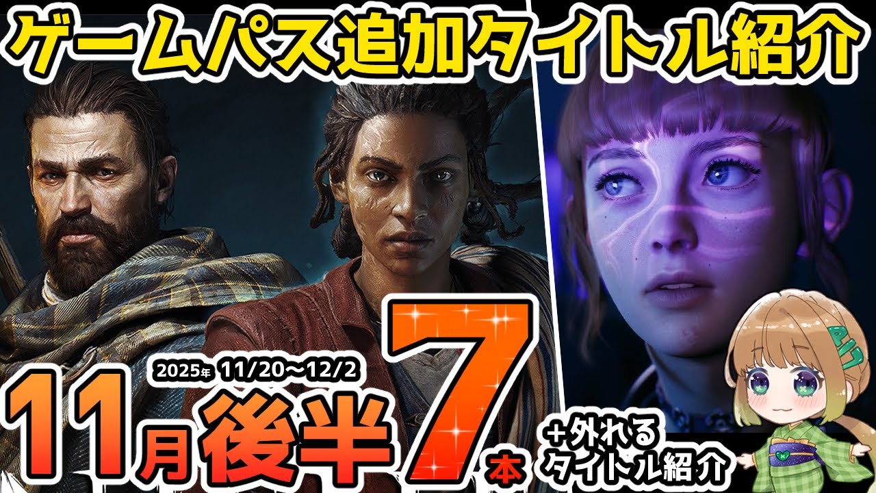 2025年11月後半にゲームパスに追加されるタイトル全てと