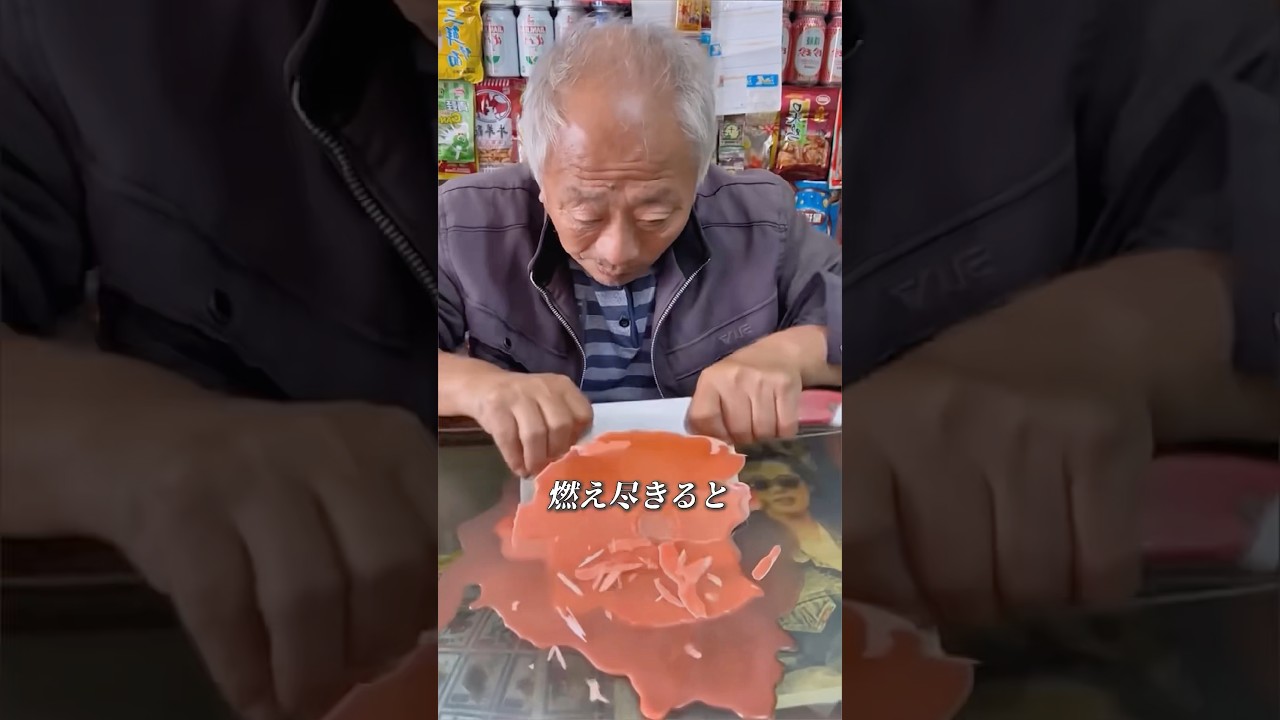 ここでは人々はロソが燃え尽きると壊れた と思って全部捨ててしまいます。しかし 中国では溶けたロソを再利用して新しい ものを作ります。まず大きな容器で古い ワックスを溶かします。次に火の棒を取り 、糸を巻き付けて液体ワックスに30回 浸たし日光に当てて乾かします。最後に 残った糸を切り取って新しいローソを作り ます。
