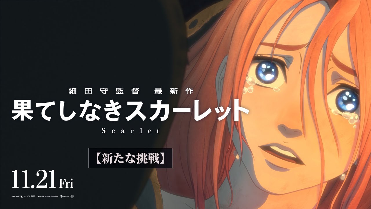 復讐を果たさなければ追われない。 スタジオ地図が送る最新作果しなきスカーレットがついに公開。生きるとは何かを問う壮大な物語が誕生。 君がもし今みたいじゃなくもっと違う風に過ごしていたらどんなだろう? じめな父上の後をえ。 かつてないスケールで送る細田守監督最新作果なきスカーレット前作り龍とそばカスの姫から 4 年細田監督が今回描くのは絶対に探し出してきを打つ 中世電マークの王城スカーレット 縮的に復讐を果たすため死者の国を旅する この葛藤の感じなんかはこの映画の ね、ポイントになるようなカットですよね。スカーレットもデンマークの王女様ですけども、今と変わらない思いを抱いてて、ま、悩んで苦しみながら、ま、生きてるんだみたいな風なことが伝わるといいなと思いながら 細田監督にとって主人公を外国人で描くのは初めて。スカーレットの壮大な物語を作るため、アニメーションの新しい表現に挑んだ。 激しさを出した方がいいと思いますし、青食縛ってのと同じようにこっちも、 ま、眉がぐっと、 ま、動いてるとか 細田監督作品の CG 制作を担ってきたデジタルフロンティア。壮大な世界観と新しいヒロインを作り上げるため、これまでにない膨大かつ繊細な CG作業が行われた。 中でもスカーレットの表情には監督のこだわりが。 今回の地獄の旅するあの王女がもちまみれで泥まみれで質感を描くのに、ま、指示が必要だとこれまでのそのキャラクターのルックとは違うもの新しいルックを探るっていうこの口の形とかこう前の角度 はい。竹でも結構毛したって変わってくる ので、あとはその髪の毛とかもこの 振り乱すのたくさんつけることでこう あれく感じを表現したりとかいろんなもの が合わさをどう出すかっていうのを少し ずつこう積み重てような感じです。 さらに監督の深いこだわりがあったのは死者の国の荒野の表現。 よく監督か空間、その世界の空間を出してって言うんですけど、 CGでこうBG を作る場合結構しっかり地面を作っちゃうんですよ。物を大きすぎて そこからここまでが近く感じちゃったりするんですけど、ま、そういう情報がこいてあげることで見る側の想像に任せてるんですよ。 何もないことで遠くに感じたりする。 そして壮大な物語を描くため音楽でもかつてない試みが龍とそばカスの姫以来 細田監督と2 度目のタックを組んだのは作曲家の岩崎大。 ちょっと特殊な取り方をしてまして、パートごとにこう大人数で取っていくと 今回バイオリン、ビオラチェロコントラバスといった原学器だけで総然 210 人に登る大銀数での編成で収録された。 さらにパーカッションでは 21代のスネアドラムを集めての演奏も 数々の作品を手掛けてきた岩崎さんにとっ ても今回は新しい試みの連続だったと言い ます。やっぱない世界を描くっていう細さ の挑戦にこうついていく上でない録音の 仕方をやったりあと日本じゃないところで そこそイタリアで撮ったものもあるんです けど企画外だなとは思いますね。本当に あり方も含めて、ま、時間がまずね、それ だけかけられるっていうことが なかなかないってか、もうまず僕も初体験 のことは多いだ。本当に作品1つ作るん ですけど1つ作っただけではない価値が あるような感じがしますね。今も 絶対に敵を打つ悪のスケールで描かれる大 な物語。 みな父上の後へ。