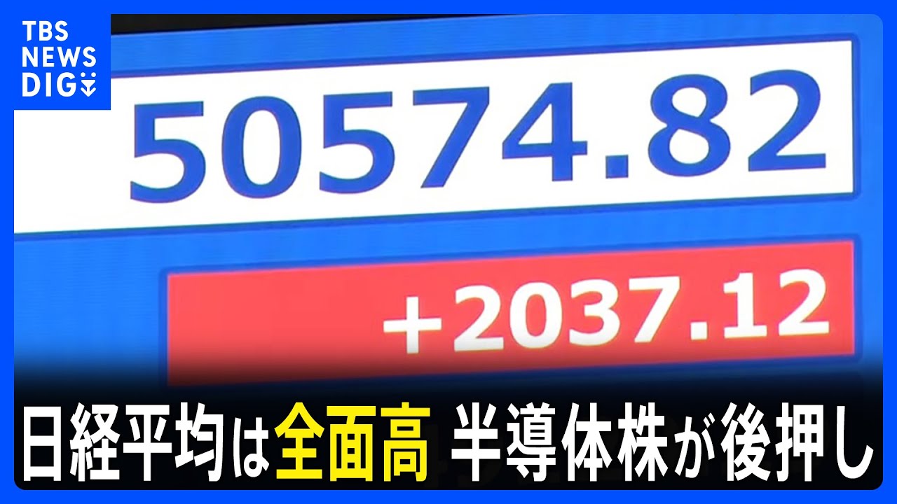 【日経平均】“一時2000円超上昇・5万円台回復” エヌビディアの“過去最高”決算などで 一方で財政悪化懸念から円安・債券安続く|TBS NEWS DIG
