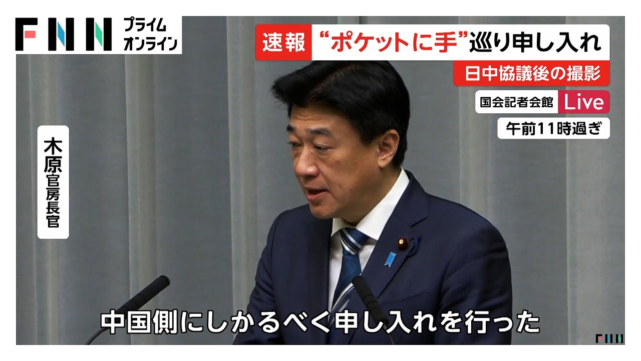 中国側がポケットに手を突っ込み撮影…日本政府が中国側に申し入れ 影響の長期化懸念も