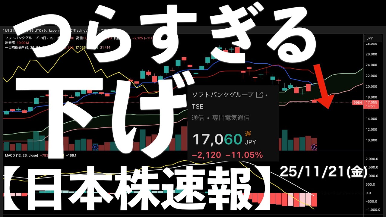【日本株速報】25/11/21 つらすぎる下げ!SBGは追証も混じる水準へ! #日本株 #半導体 #topix #nvidia