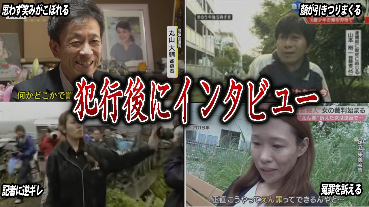 [音楽] インタビューを受けていた犯人たち高等 マンション上隠し殺人事件星島 孝典2008年4月18日東京都高等区の マンションで殺人事件が発生23歳の会社 員女性が突如として姿を消しマンション内 で殺害されたこの事件被害者の行方がすぐ には分からなかったことから神隠しと呼ば れ連日大きく報道された被害者は帰宅した ところを犯人に捕まりその日のうちに殺害 遺体は生されていた犯人は被害者の二部屋 隣に住んでいた星島高彼は月収約50万円 のSEとして働いており金目的による反抗 ではなかっ た事件発生から1ヶ月以上経ってから星島 は逮捕されたがそれまでの間彼は 何食わぬ顔で神隠しマンションの住人の 1人としてカメラの前で平然と報道人の インタビューに答えていたのだで出てるの を見てないあのカメラに映ってないんで ちょっとおかしいんじゃないかって感じで まちょっとま僕疑ってるのかもしれない ですけども疑れるたちょっとあるかもしれ ないですけどもやっぱり反抗の同機は女性 を奴隷にしたかったと一心後半で彼自身が そう語っているしかしそれだけではなく 星島には深い闇があった星島は幼少期に下 半身に大を追っておりそのことでいじめを 受けていた両親に相談した際守ってもらえ ず怒られたという経験が両親への深い殺に もつがっていったという高校卒業後はゲム 手のセガに入その後もコンピューター ソフト会社や都市銀行で働き高い評価を得 ていた星島は他人を見下すことで情緒を 保っており贅沢な生活を送っていた社会人 として立派に働いていたように見えた星島 だが火傷にタを発した両親への恨みは深く 状況後は逮捕されるまでほとんど実家に 帰らなかったという裁判では検察側が死刑 を休憩しかし2009年2月18日東京 地裁は無期懲役の判決を言い渡した判決 理由では性奴隷にしようとしてらし事件の 発覚を防ぐには被害者の存在自体を消して しまうしかないと考えた事故中心的で卑劣 な反抗で借料の余地はないと厳しく遮断し つつも死刑選択には相当強い悪質性が認め られることが必要となるがこの殺害では 必要な攻撃を加えたものではなく残虐 極まりないとまでは言えない自ら罪を食い ており死刑は重すぎると結論付けた検察側 は控訴したが2009年9月10日の控訴 心でも無期懲役が指示された東京高裁は 殺害は磨って極まりなく死体損害は人間の 尊厳を無視する他に類を見えない おぞましい反抗だとしながらも全科なども なく自らの罪を食いて謝罪の態度を示し 強制の可能性があるとして無期懲役が妥当 と判断その後検察側は上告を断念被告人側 も上告せず2009年9月25日付けで 無期懲役が確定したこの事件は犯人の残虐 な反抗とその後の冷静な態度のギャップ そして高い能力を持ちながら凶悪犯罪に 至った経緯など多くの謎と衝撃を残した 秋田児童連続殺害事件畑山鈴鹿2006年 秋田県藤里町で衝撃的な事件が発生畑山 鈴鹿は自分の娘と近所の男の子2人の幼い 命を奪った4月9日畑山は9歳の娘彩佳 ちゃんを川に突き落としてさいその後何ぬ 顔で警察に娘の失踪を通報した当時警察は 自己主と判断したが畑山は納得せず誰かに 殺されたと主張悲しむ母親を演じマスコミ の前で涙を流しながら真相救命を訴えた しかしその1ヶ月後の5月17日今度は2 県隣に住む7歳の男の子軍を殺害し遺体を 河に 行き畑山が犯人として浮上したのは不自然 な言動が目立ったからだ冬門のパーカーを 来たり丁寧ごと乱暴な言葉遣いを使い分け たりとチグハグな印象を与えていたまた 精神家に通院し処方された薬を大量に服用 していたことも明らかとなった 次第に世間からは悲劇の母親から容疑者へ と疑われ始め押し寄せるマスコミに暴言を 履いたり手を上げる様子も取り上げられ ただとわないんですかこれから仕様で 出かけます後ろついてきたりしないで ください映さないで くださいそこの人分からないんですか 分かりました [音楽] か迷惑なんです本当 に全員飯し ください全員名刺 ください逃げないで名刺 ください飯し くださいあなたもねね飯し ください手触れてないで飯し ください人の映像取るならそれなりのルー ルっていうものがあるんじゃないですか さらに畑山は事件前から自殺願望を抱えて いた2005年には溜め込んだ薬で自殺を 試みたが失敗その後も自殺サイトに アクセスするなどへの思いは消えなかっ た台本を鈴鹿は高知書で何度も自殺密を 繰り返した裁判では弁護側が心身攻略を 訴えたが検察側は完全責任能力があったと 主張結局裁判所はすかに完全責任能力が あったと判断した2009年畑山に無期 懲役の判決が下され現在も服役中だこの 事件は母親による我が子殺害という衝撃的 的な内容に加え反抗後の畑山の態度が物議 を醸した悲しむ母親を演じながら実は自ら が殺人者だったという2面性は多くの人々 に戦慄を与えた不定偽装殺人事件足立 明美2018年大阪府堺市で事件が発生 足立明美は2018年1月実家で糖尿病の 治療中だった親67歳に大量のインスリン を投与