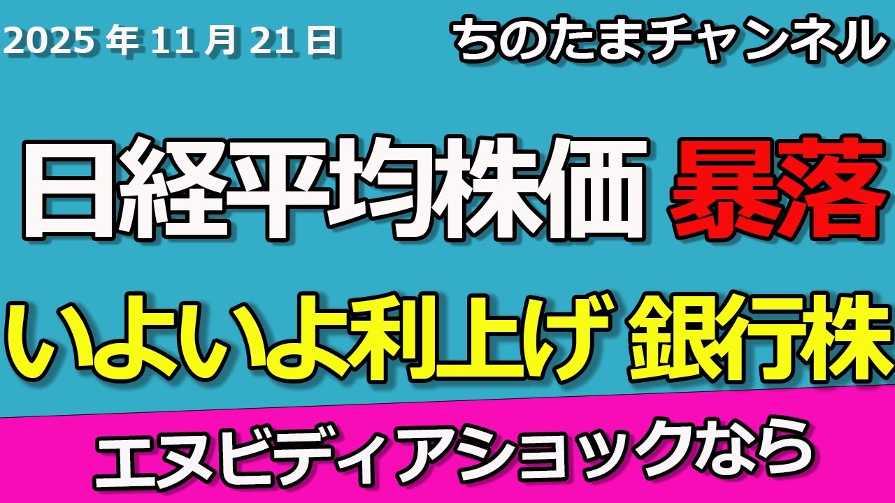 ちの友です。一般のます。コナお願いします。今日は日経平均株価が、ま、下落というか厳しいね、え、下方向への動きということになっています。まあ、昨晩 アメリカエNIA ショックという言い方ができるんでしょうか。 NDIA 株中心に崩れていって、え、そしてね、日経平均も当然反動 関連引っ張られたということになっています。 ま、これ5%入ってすぐぐらいの値動きに なってますけれども、うん、ま、どうやら ね、また厳しい、え、動きになっていそう ですし、ま、金曜日陰線引けということに なれば週足としてもね、え、少し厳しい、 え、予想はあるんじゃないかなと。ただ 一方で、ま、日経平均のね、清度なんかを 見ていくと、ま、どちらかというとね、 アドバンテスト、ソフトバンク、東京 エルク、ま、そして藤くラぐらいですかね 。この辺りがもうほとんどね、こう 1000円ぐらいのマイナスになってる わけですけれども、え、構成費としては 占めてきているとことになってます。ま、 もうこの辺りね、もう、もう本当にごく、 え、わずかというような位置付けにもなり ますので、ま、とにかく一部の銘柄だけ ですよ。うん。ま、一部の銘柄が、え、 大きく下落に起与しているだけという意味 で、え、日経平均は、ま、特にね、え、 こう全体感として心配というよりも異質な 値動きというような見方もできます。と いうのもトピックスに関しては、ま、ほぼ プラマイ0水準ということで、もうまさに これね、反動体だけが、え、下落している 、え、そんな、え、ま、特別な、え、日に なっているんじゃないかなと思ってます。 実際問題私自身のポートフォリオも ほとんど今日はね、傷を受けていません。 ま、もちろんこれね、日経平均に連動する 投資信託持ってますんで、それはもうね、 もに被害食らってるんでしょうけれども、 個別株という言い続けではポートフォリオ ほとんど向きずに近いんじゃないかな。 むしろプラスなんじゃないかな。で、え、 お昼休みね、え、少しこうライブ配信させ ていただきました。え、そんな中でもね、 ま、皆さんも、え、少しコメントいただい たんですけれども、ま、特にね、大きく 下落を受けているというよりも ポートフォリオプラスという方も いらっしゃいましたし、え、やっぱりこう いったね、下落の中ではあんまり慌てずに そしてできれば今日ね、私は買い挑もうと 思っていたんですけれども、うーん、ま、 自分が狙っている銘柄に関しては特に 下がっていないというとこで会話見送って いる状況になっています。まあね、え、上 にも下にもという感じで中途半端な、え、 今日はね、え、動きトピックスそして、え 、ま、全体感的にね、VALU株に関して は、え、あんまり下がっていないという 部分がありますんで、ま、見送ってね、え 、味方上がりでいい中での下落という ところをしっかりと拾いたいと思ってます 。ま、もちろんね、ハンド感連で狙われ てる方にとってはね、チャンスの日なのか もしれませんけれども、ま、若干 エンリビディアね、崩れてきてるのは気に なるかなと。ただ一方でこういうね、崩れ た時ですよ。こういう時に分割でスライス で買える人が、ま、将来的な利益を生むと いう側面もありますので、え、私は やっぱり勇気を持ってね、手を出していき たい部分もあるんじゃないかなと。一方で こう買わせがものすごく気になりますと いうとこで、まあ夏ぐらいからね、ずっと こう150円 ならないし140ま、5円ぐらいかな、 この辺りのレンジをずっと走っていたわけ ですけれども、ま、一気にね、高一制に なってからですかね、急速にこれ円安が 進みました。うん。え、まさかこんな にっていうような表現かもしれませんけど も、え、今のね、勢いだと160円 チャレンジとか全然あるんじゃないかなと いうところで、え、ねえ、市場としてはね 、もうこれ円安だというところで形成され ているんじゃないかなと。で、やっぱ いっぱい気になるのが、ま、川せ介入です よね。当然考えますよね。やりますよねと いうようなとこで演を牽制してきています 。え、まあね、え、米財務長官との ペーパーということで公文かなんかには しっかりと介入とも入ってるので、そう いったところは当然やっていきますよと いうところで、うーん、まあなんとかね、 こう登期的な動きも含めて、え、こういう 無秩序、無変化、え、無秩序ね、え、こう いった変動は許せないというところです けども、これ川せ介入こそがね、え、 無秩序で登期的な、え、やり方かなと私は 思っていますので、うー、まあ、川世界に はこうやめていただきたいと思います。 もう市場がね、ファンダメンタルズを持っ て、え、これね、動いている部分になり ますし、ま、もちろん登期的な動きって いうのは、ま、あるのかもしれません けれども、日米、金利差、そして、ま、 輸入、え、輸出、え、こういったところを ね、え、相対的に見