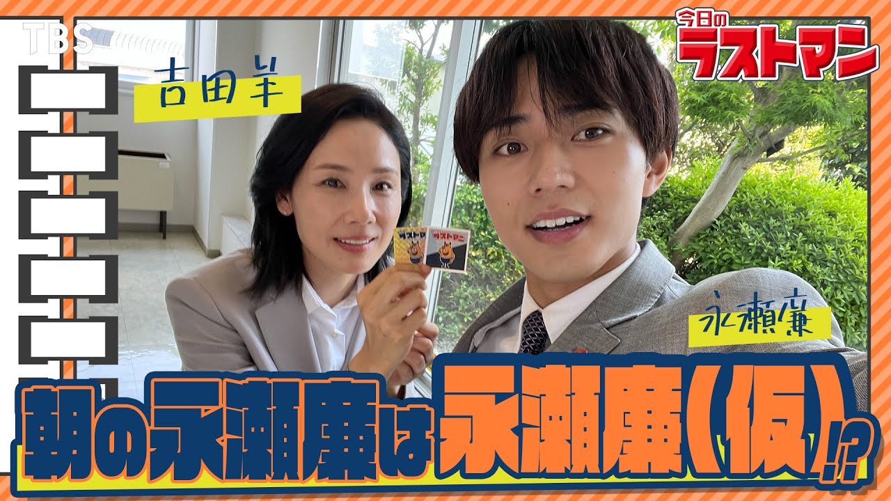 皆さんどうも 5藤泉の中瀬連れんです。はい。さあ今日も撮影が終わったので今日のラストマンに突撃していきましょう。行きますか。 さあ、ということで本日のラストマンはこの方です。 こんにちは。吉田よです。 吉田よさんです。 お疲れ様でした。 お疲れ様でした。いや、まだまだ、ま、まだまだまだあっさりしすぎすよ。帰りたい。 松尾さんと同じボケストをすぐ帰りたいっていう。 帰りたいよ。 もうちょい話させてください。いいですか? 本日のラストは2回目ということで。 そうなんです。 そしてさらに本日オールアップ。 うん。 おめでとうございます。 ありがとうございます。みおちゃんは すいません。いいじゃないですか。インタ ュはちゃん。 2人して2 人してみおちゃんの話やめてください。 みちゃんが良かった。 今日流せですから。そうです。 みおちゃんとはちょの感じで行きますから楽しみましょう。 え、 楽しみましょう。 今日のラストマン。 さあ、ということでラストもついに最終回ですけども、これまで撮影で印象に残ってるハプニングができるというありますか? 長瀬連君の寝起き 嘘。 どんな、どんな感じでした?それ 朝の長袖は流せでかこてまだになってないぐらい挨拶しない時もあるもんね。 いや、それはそれそれまた言われた。松尾さんにも無視したって言われてしてないですよ。 うん。したつもりはない。 聞こえてないですよ。全然 聞こえてない。 よのこと無視してないです。 2 回ぐらいあるか。うわ。して2 回もしてた。俺 マジか。 聞こえてないだと。聞こえてない。完します。 うん。大丈夫。しんどくて面白いんで。 印象に残られてしまってるんだ。それ挨拶してないやつ。 もうすんません。本当に なんだろう。いや、なんか最近の話なんすけどさハんとみおちゃん撮影してるとこがあって熱くて外がでみおちゃんがちょっと顔が赤かったんですよ。 [音楽] で、松尾さんとかさん、よし大丈夫?なんか対象悪いの?みたいなすっごい心配してるんですよ。で、僕はちょっと顔若いと昨日も飲んできた。 [音楽] そう、そう、そう。 その差がすごいんすよね。 いつもね、2日なんです。 違う、違います。いつもじゃない。 1 回もないですからね。その差はちょっと最終回目前にして気になりましたね。 でもそれぐらいが気持ちいいんですけどね、僕としては。 え、何が?どういうこと? そのいじってもらえるが居心地がいいというか。 あ、なるほどなるほど。 だから今回の現場はすごい楽しかったです、僕。 そうですね。最終回なんですよ。そして 注目ポイントありますか?何か? 島さんとつきそうですか? ということはだいぶガります。だ ぶ言いました。逆に言ってくれ。 言ってないよ。そんなん嫌ですよ。そんなんそれでくっつきたくないす。物語の中で俺。 そう、そうか。そうか。このシーズンではくっつかずにラストマン 2でくっつくるというなんで ですね。僕もそのつもりでやってます。今ラストマン 2で はい。で、ラストマン3で第3 者が入ってます。 どんくらい行くんすか?ラストどこのシリーズまで行くんすか? 私泉さん憧れてますっていう新人が入ってます。 いいっすね。 そのシーン欲しいわ。 上がまときたいと 最高じゃないですか? パラビでやってもらっていい? パラビでも多分やってくれ。もしかしたら なんか完で前回のラストマン、今日のラストマンのこのコーナーに撮影で 長瀬さんの逮について伺ったのですが結局中華の話になってしまったのでもう 1回してほしいとのことです。 なるほど。 中華美味しかったよね。 美味しかったのよ。違う。それじゃない。それじゃ美味しかったんですけど。 な、 美味しかったんですけどね。 初めてのね、だって90ぐらい。 そう。だからどうあったんですか? なかったんですよ。 うん。 その最初のコメントで手錠とかかけれたらいいなと思ってるんですけど、なんか 2回もかけてました。 うん。本ん当ですよ。さんを差しおいて。 あ、そうなんすよ。主任を差しおいて僕が言ってますから。警察官らしいことを全部できたので、今回。 [音楽] うん。そうか。 僕は大満足でしたね。大できたし、説明も言ったし。 言ったし、警房も言ったし、 乗ったし、 いろんなことしました。僕 楽しかった。だそうです。 うん。 きさん色々お話ありがとうございました。こ ラストマシールを お プレゼントいたします。 ありがとうございます。 2 枚目ですか?2 枚目です。2 回目なので。これあれですか?最終回ってこと? これ最終回なんですよ。3 枚いただいた方いってことですね。だって松尾さんも 2回だ。 僕がまさか インタビューアが 回ということで先ほど ゴールデナさんいただきました。 おめでとうございます。 はい。そして最終回ということでよさんにもゴールデンラマシールあげております。 雑。 もう ひど。 せっかく作ったのでもう大量に持って帰って欲しいんです。なんなら気づいたかもしれないですけど。 [音楽