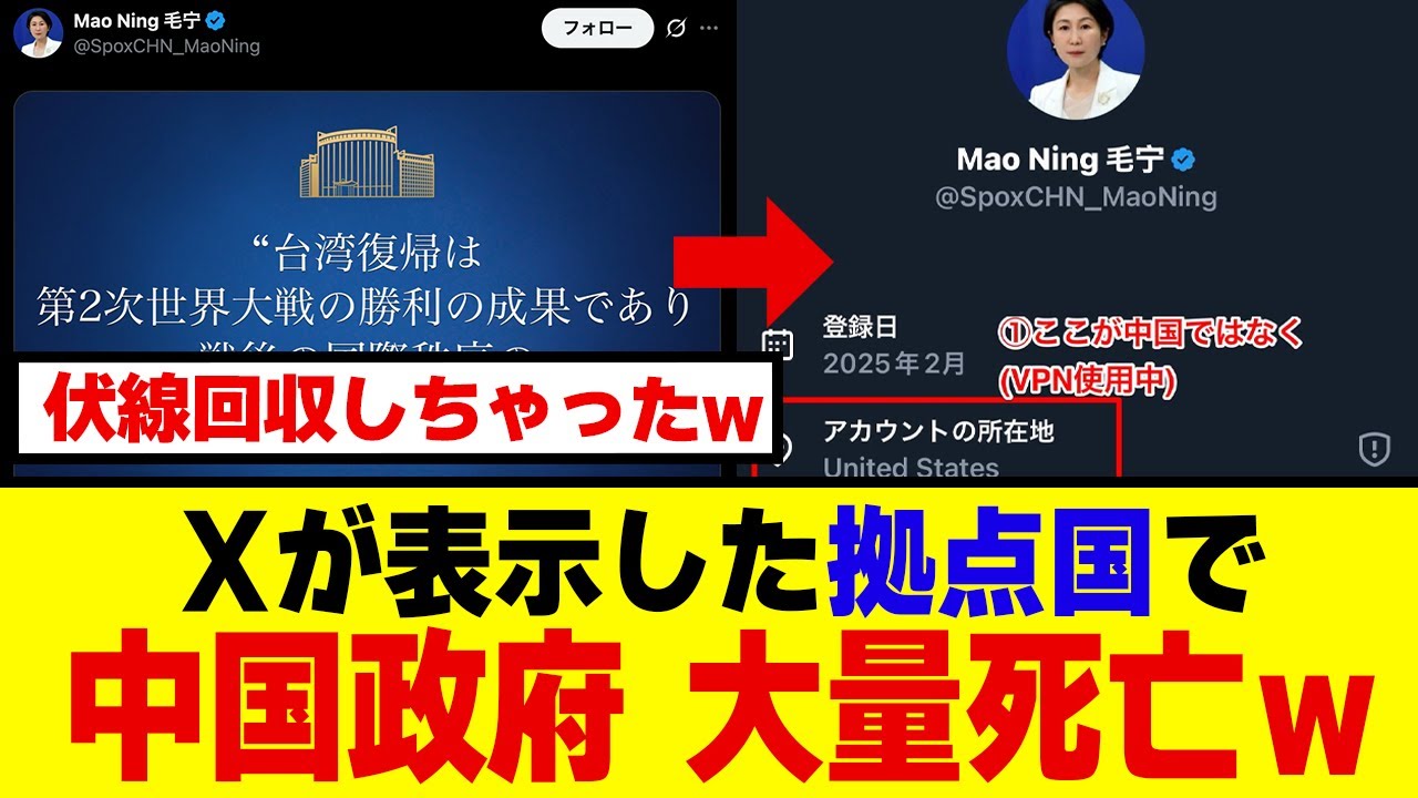 【緊急暴露】X新機能で中国工作員の素顔が全部バレるww 毛寧報道官、まさかの米国から投稿判明でネット騒然!中国の二重基準が完全崩壊へ…
