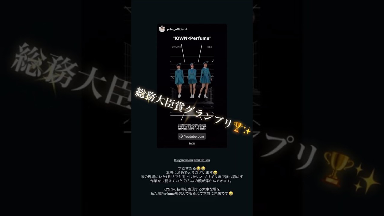 Share Facebook Twitter Pinterest LinkedIn 2025年10月24日までの #Perfume Xとインスタグラム寄せ集め~Perfumeが参加した日本電信電話「IOWN×Perfume」が総務大臣賞 / ACCグランプリを獲得#prfm 2025年10月24日までの #Perfume Xとインスタグラム寄せ集め~Perfumeが参加した日本電信電話「IOWN×Perfume」が総務大臣賞 / ACCグランプリを獲得#prfm ACCグランプリを獲得celebrityPerfumeインスタグラム西脇綾香