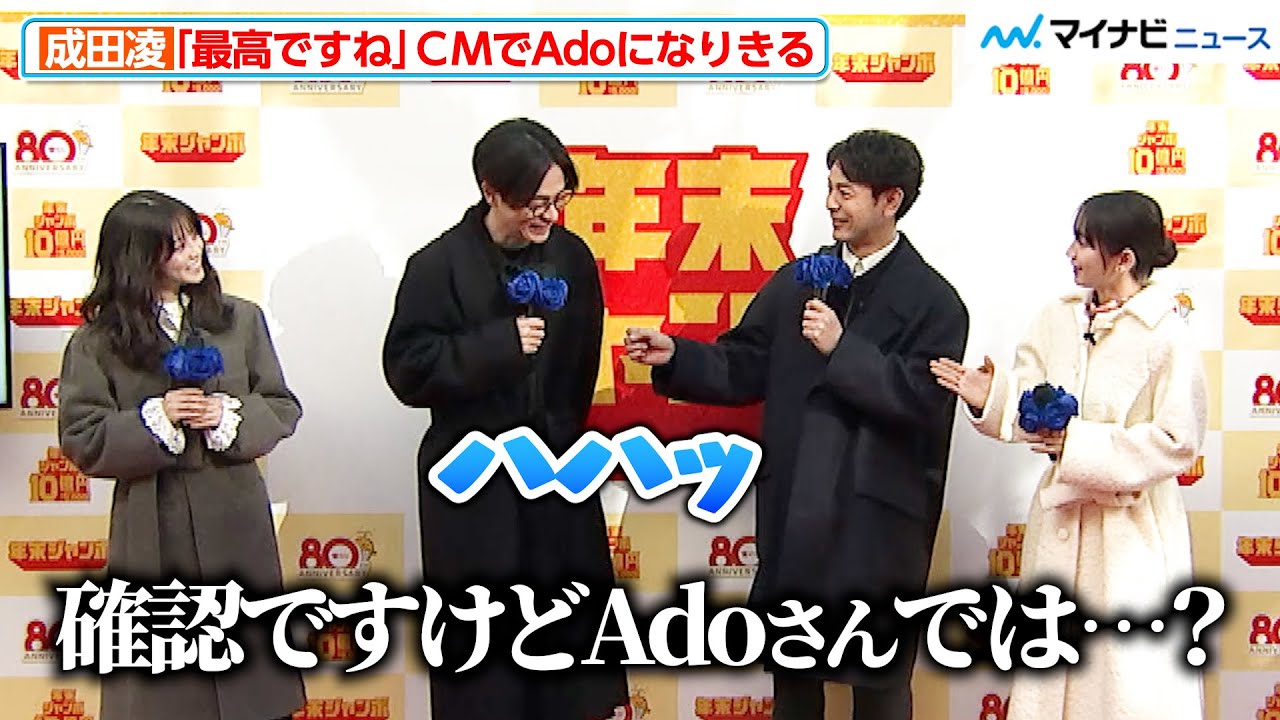 Adoになりきった成田凌、妻夫木聡からの質問に“匂わせ笑顔” 今田美桜から「ドヤってる」とツッコミも 「年末ジャンボ宝くじ」「年末ジャンボミニ」発売記念イベント