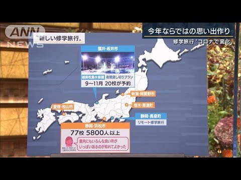 新型コロナウイルスが流行するなかで、新しい生活様式にあった新しい修学旅行が、各地で始まっています。静岡県浜松市には、県内外から77校5800人以上が訪れているといいます。浜松市によると、去年まで修学旅行の受け入れは、ほとんどなかったそうです。静岡県東部にある三島市から来た小学6年生は、東京に行く予定だったが、「県内にもいろんな良い所がいっぱいあるのが知れてよかった」 と話していました。