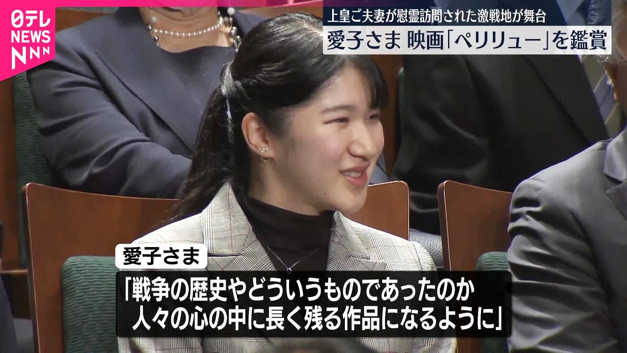 天皇皇后両陛下の長女、愛子さまは太平洋戦争の激戦地パラオを舞台にしたアニメ映画を鑑賞されました。