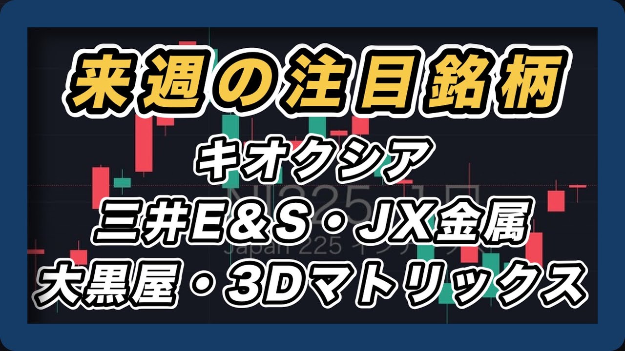 【来週の注目銘柄&日経平均展望 戻り売りか上昇か?】 キオクシア・三井E&S・JX金属・大黒屋・3Dマトリックス