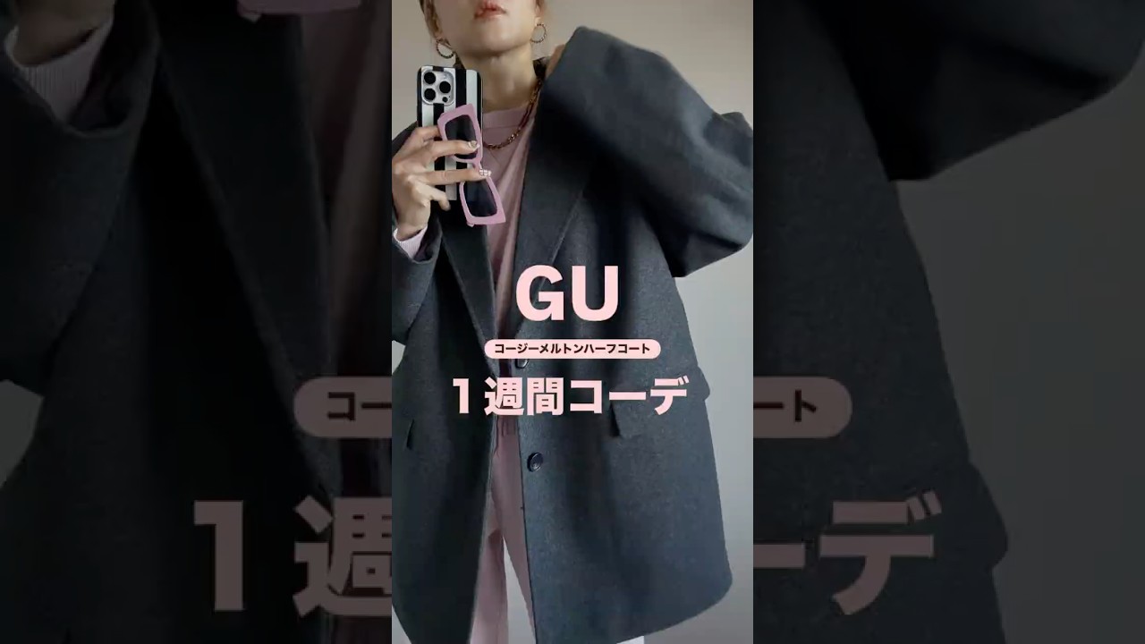 やばいやばい気回し無限GUの工人 メルトンハーフコートを使って1週間コデ 紹介します。オーバーサイズに帰宅サイズ はXLをチョイス。幅広いコーデに使える クラシカルな素材感がお気に入り。月曜日 はプリーツスカートとタツ。肩の落ち具合 もいい感じ。火曜日はデニムでカジュアル な雰囲気に。水曜日は巻キシュワンピで リラックスコーデ。木曜日はロングブーツ と好きにブーツインな気分。金曜日はリブ タイトにミニワンピクラシカルな雰囲気に 。土曜日はスエットパンツを綺麗っぽく 合わせてみました。日曜日はスレッドの セットアップで足元はローバー。海外にし てみました。お手頃価格でこんなに気回し もできちゃう。さすがGU。みんなも チェックしてみてね。