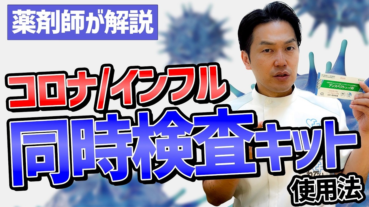 風とコロナインフルエンザ初期症状はどれ も似ています。少しでも自分の身を守る ためにこういった検査キットなどを活用し ていきましょう。どうも薬剤 YouTuberのワリポップです。皆 さんこの時期風かな、インフルエンザかな 、コロナかなって迷うことありますよね。 今回は風、コロナ、インフルエンザの違い と症状の見分け方、検査キットの違いまで しっかり説明していきます。普通の風と コロナインフルエンザ、初期症状はどれも 似ています。症状としては喉の痛み、咳、 鼻水、発熱、だるさ、どれも共通です。 正直症状だけで見けるのは難しいですよね 。普通の風は症状が出ても38°ぐらい まで3日から4日で大体警戒します。次に インフルエンザ。急な38°以上の高熱と 強い関節痛、筋肉痛検態感が特徴的で発症 は急激です。次にコロナ。発熱や強い喉の 痛み、だるさなど風に似ていますが、1 週間ほど長引く傾向があります。そして 嗅覚や味覚の異常が出ることもあります。 発症2日前から発勝後5日間はウイルスが 多い傾向です。感染リスクも最も高まり ます。インフルエンザは例年冬場に流行し ますが、コロナは近年夏にも流行が見 られるようになりました。つまり1年中 注意が必要になります。そこで活用して いただきたいのが高原検査キットです。 コロナとインフルエンザ同時に検査できる キットが販売されました。今回は一緒に 使い方を見ていきましょう。まずはこちら の箱にですね、穴があります。こちらが チューブを立てるために穴を開けます。 そしてこちらのバッファーを開けます。 専用液ですね。軽く振ってこちらの チューブ縦てに差します。そしてこちらの ラベルを開けます。そしてその後にですね 、専用の綿棒があるので綿棒を開けて ください。こちらですね。そしてこの綿棒 をですね、え、ビクに沿って鼻に差して 2cmほど入れていき、そっから5回転し ます。12345 [音楽] 。そして5秒間置。12345 。はい。これでしっかり閉めってることを 確認します。そして速やかにこちらの バッファーに差し込んで10秒間確。 1234567890 [音楽] 。そして絞り取るように中身を出していき ます。こうですね。こうギュッとつまんで 絞り取ってください。そして絞り取ったら こちらをですね、専用チップをけていき ます。敵画チップですね。 はい。そして専用のですね、こちらの テストカセットを出してこの上に適化して いきます。そしてこちらのですね、 チューブを上から開けてこちらの機材にで 、4滴ずつ両方とも入れていきます。注意 が必要で先端を先につけないようにそして 4滴ずつですね。1234 はい。1234 はい。これで15分整置します。そしたら 判定となります。判断出ました。私ですね 、陰性になります。コロナが要請の場合は このTの方に20線が出ます。そして インフルエンザの場合、A型の場合はAの 方に20線、B型の場合はBの方に20線 が出ます。こちらを使うことによってです ね、インフルエンザ、コロナになった時に ですね、効率よく対応できると思いますん で、是非ともですね、分からない方使って みてください。こちらの検査キット注意点 として発症後、12時間以内に検査して しまうと義という結果が出てしまうことが あるんです。発舌などの症状が出て12 時間経ってからこの検査キットを使うよう にしましょう。そして感染していた場合、 発症後5日間はウイルス排出量が多く人と の接触を避け、マスク、手洗い、換気を 徹底しましょう。自宅療用中は感染拡大に 配慮して発症から5日経過しても症状が 続いた場合は下熱しかつ症状が警戒して から24時間経過するまで外出を控える ことが推奨されています。万が一生 息き苦しさや検態感などの全身の症状や ひどい情熱が続くなど重症化が疑われる 場合には医療機関の受信が必要になってき ます。少しでも自分の身を守るためにこう いった検査キットなどを活用していき ましょう。他にも使って欲しい商品お薬 などありましたら是非ともコメント ください。薬YouTuberワディポ でした。また会いましょう。バイバイ。 私たち大外チャンネルは2026年末まで に、え、チャンネル登録者数20万に 目指してます。 是非ともですね、チャンネル登録、あといいねボタン、あと配ブタンもいいね押してください。