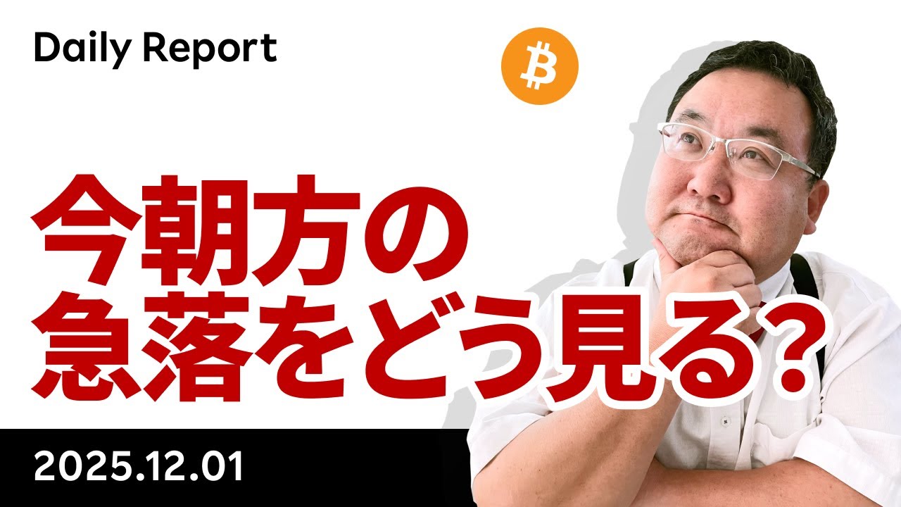 おはようございます。楽天の松田です。 よろしくお願いします。え、週末のビット コイン相場は半落とちょっと9.3万ドル まで上値伸ばしたんですけど、今朝方 8万7000ドル 終わってちょっとね、その後もね、 ずるズると8万6000前半までちょっと 下がってしまってるという感じで、 ちょっと半音戻し、あ、反音落としの ところちょっと割っちゃったなという ところで、え、ちょっと心配な、あ、展開 です。え、ビットコインはですね、え、 12.6万ドルで、どれかな? 12.6万ドルで、あ、これじゃないな。 これで言うとね、日足にしと 12.6万ドルで、え、上値を抑えられる と、そっから10.7万ドル。ここね、え 、また違うんですけど、あの、クリプトな んで、え、コインベースだったら 10.7万ド、10.3万ドル、 9.3万ドル、そして8.8万ドルとえ、 いう風に下値を大体5000ドルずつ 引り下げてきて最後8万ドルまで行って、 そっからセリンクライマスク気味に反発し ました。で、最初はですね、8.8万ドル 元々のサポートがレジスタンスになったん ですけども、で、ま、あの、なったんです けども、え、感謝祭前の買い戻しとあと 9万ドルのオプションストライク、その 影響でですね、え、上抜けるとお 9.2万ドル近辺まで、え、上値を伸ばし ました。で、その後ですね、えー、その ままだったらあのね、え、9万ドルが ストライクですからストライクに引き寄せ られるんで、え、金曜日の17時の オプションカットに向けてです9万ドル台 にこう引き寄せられましたと、え、たん ですけど、ただね、9万ドル結局割ら なかったんですよね。これはね、相当底 がいなという風にこの時点では思ってたん ですね。で、その後CME先物まで来ます と。CM先物一時がCM先物なんですけど 。で、CM先物でですね、何があったって 、あの、ここほら11時15分でこの次 ほら2230分でしょ?こう10時間あの 空いてるんですよ。要はこの10時間ね、 止まったんですよね。それも最終日々に 止まってしまうという厄介なあ、大失体が あったっていう。ま、でも、ま、システム トラブルはどこでもありますからね。え、 ということになったんですけど、で、え、 それが開始再開したらですね、もうあと4 時間しかない、あ、ちゃう、あと3時間か な、3時間しかないっていうことで、 うわーっと買い戻されて、え、 9.3万ドルにワンタッチしました。 で、え、ま、ただその9.3万ドルって いうのは元々のレジスタンスでもあります しで、これ4時間にした方がやな。 元々のね、9.3万ドルっての、あ、ここ か、この9.3万ドル、ここでね、何回か こうサポートされたところでもありますし 、これね、1回こう下がって、え、さらに 、え、9.4万っていうのが11月11日 かなからの下げの反戻し9.4万ドルと いうことで、え、そういうところでもあっ たということで上値を1回抑えられて、 えー、 で、週末は9.1万ドルを挟んでの合水と なりました。ちなみにETFフローはです ね、3日連続プラス、ただま、そんな 大きな金額のプラスが入ってるわけじゃ ないですけど、え、久々にこう修字で、え 、プラスにな、あ、マイナスにならなかっ たということで、だからどういうこと かって言うと、ま、流血は止まったなと いうような形になっています。あとテザー がですね、え、これかな?テザーの人が その、え、S&Pのね、え、格下げに反発 と、え、あとストラテジー者のCEO、 ビットコインの販売売却はですね、最後の 手段と発言するだと コ部な材料が続いたんですけど、ま、明確 な同意には至りませんでしたと。で、 週明けですね。だけ、え、CM詐欺物が オープンするとちょっと上値が重くなって 、で、あの、今日、あの、今朝10時から 上田総裁の会見があって、これが12月 利下げに、え、利上げアメリカ日本の場合 ね、利上げがあるか最後か資金席になると いう風に警戒されていて、特にあの、 やっぱドル円に関しては、あの、やっぱ いろんなところからね、あの、政府からも ですね、いろんな発言があって、この公演 なんか発言あるんじゃないかみたいな、 そういう気持ちもあったのかもしれないん ですけど、え、もうそ、そもそもその前の 段階からね、ガタガタって、あの、日経 オープンする前からあ、ドリエン下がり 始めて日経がオープンするとストンとこう 下がったと、え、いうことでこのリスク オフの流れを受けてだから と言ってもですね、やっぱこうね、日経 平均の先物がその先物が前からガタガタっ とこう下があって、そしてでこのオレンジ がドル円なんですけど、この辺も ガタガタって下がってました。それで オープンするともうもう1段下がったと いうことでビットコインも補を合わせる ように下がってんですけど下がってるん ですけど日本株豚とかドレイン比べてま 普段のボラティリティ違うっていうのも あるんですけどちょっとビットコイン 下がりすぎだろうっていう気は印象はない ことはないということなんですけどまこの リスクオフの流れが