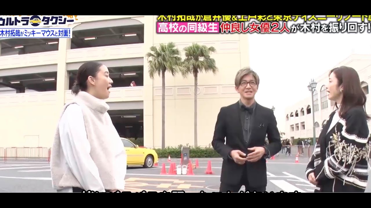 ウルトラタクシースタート。 [音楽] 木村さん特番です。よろしくお願いします。 特板です。 はい、始まりました。打ち合わせもしてないような状況で はい。日にと海浜地区にあるホテルに何時に来いって言われただけでした。 今回はタクシー運転手になって豪華芸能人を運んでいただくという。 いや、特板っていう風におっしゃってくれてんのすごい嬉しいんですけどチーム的には完全にモニタリングなんですよ。 [笑い] なんか怪しくてしょうがなくて 車も作ってしまいまして、ここでロケなしってなるとちょっと 300 万損することになってしまいますので はい。して損してください。 [笑い] と言いつつ木村はしぶしぶ運転席へ。ちなみにこの車には UBER タクシー全面協力で乗車を受けられるシステムが搭載されている。 すると なんだこれ? なんか来たよ。 誰かがいるかも知らないのに そこまで行く。 この恐怖ゲスを教えてくれないっていう番組なんすか?これと一の不安を抱きながら向かった先で待っていた芸能人は [音楽] そろそろだよ。誰?あれ?あれ?あ、あら、あら。 これき方も女席に乗ってくれんの? いいですか?お邪魔します。すか? うわあ、すごい色の車ですね。 人気女優青い U 相手の 列公開中山田洋子監督の映画東京タクシーに木村と共に出演している彼女が最初の乗客。 いや、もういいんじゃないですか。このままの車内トークでもうなんか そうします。 成立しそう 違うんです。私はあけみ1 丁目っていうところに 連れていただい。 これ私タクシを開始。 はい。 え、次ここに行けってこと いいですか? どこ行きたんやろな。何したん?楽しいことがあるんですけど。 楽しいこと? はい。 ほお。 という割に目的地は何の変哲もない千葉の路上。 [音楽] 一体ここに何があるというのか。 この辺ですよ。 そうですね。はい。ここです。ありがとうございます。 そして目的地に到着。しかしなぜか降りようとしない青いすると よろしくお願いします。 鼻水出ちゃった。よろしくお願いします。 花水出ちゃった。 が見えて笑っちゃったよ。 何して? お久しぶりです。 これ何? 同級生です。 同級生です。 ここの同級生です。 来たの?いたの? 来ちゃった。 いや、来ちゃったという。 これなんだ? 蒼井の高校の同級生であり、木村とも甲師ともに信仰があるという女優上と綾が合流。 仲良2 人が今木村に連れて行って欲しい特別な場所とは一体どこなのか。 早く行こう。ま、 どこに行くの? せーの。 東京ディズニーリゾートです。 お願いします。 お願いします。 レッツゴー。 たよ。 はい。 嬉しい。まさか村さんの運転で贅沢。 [音楽] 人気女優2 人が今行きたい場所。東京ディズニーリゾートを目指しは発信。そこでは素敵なアトラクションの数々に加え。 [笑い] あ、 なぜかダイアンツだと衝撃的な出会いも。 ここで車内ではプライベートで上が子供を連れて木村家にお邪魔した時の話題に 木村さん赤ちゃん上手だからな。 赤ちゃん上手っておかしいだろ。 なんかそうたことがある。 木村さんち遊びに行った時に すげえもう ギ泣きしてね。 バリバリグズってその時我が家にいた犬とのなんか接触がすごい良くないタイミングで接触しあジンちのちびっこがあ 130% ぐらいの力で 犬をぎゅって 握り締め 毛をむりましたよ申し訳なかった で泣きゃくってたんですけど 俺絶対寝かしてやろうと思ってそ 30分ぐらいかけて寝かし付けてくれ。 へえ。 と話しつつ着と東京ディズニーリゾートが近づく中、ここで旅を盛り上げるためのある特別コンテンツがそれは 行きます。行ったことあります。 何年ぶりですか? びっくりした。 おっと。バ始まりました。 マル富岡の懐かしい。 マイケル富岡が乗客の思い出の 1 局を流してくれるこのタクシーのためだけのスペシャルカーラジオ。は [音楽] い。 青いので 1局から参りましょうか。 んだなんだ。 行くよ。 松浦 [拍手] 思いいいねの思い [音楽] これ同級生の時だよ。 そうだね。 私これこの歌高校の時。高校の時。 [音楽] タクシーの運転室さんって大変だね。 もう疲れましたか? いや、疲れた。 疲れたってことはないですけど、 もうこの曲が、あやが好きすぎて、あやのミュージックビデオを見るためにカラオケ行って歌わずに流して大画面でモジックビデオをずっと見続けるっていう [音楽] [拍手] 高校時代 要はクラスメートなわけでしょ。 はい。 うん。右ちょっと前でいいました。 え、それさ、どういう どこ覚えてる? どういう感覚に陥るの?学校じゃないよね。もうそうなったら 確かに変な空間だったかもね。でもあはいつも疲れて本当に探したよね。金髪先生もう出てた。あの [音楽] 金パチ出てた。始発と終電で車で [拍手] みんな盛り上がってるかな? 怖い怖い怖い怖い怖い。 続いの懐かしの曲に参りましょうか。懐かし。 あ、懐かしい。 これ木村さんの懐かしソングもかかるんです? いや、俺そういうアンケートとか一切知らない。あの、 なんかずるい。 