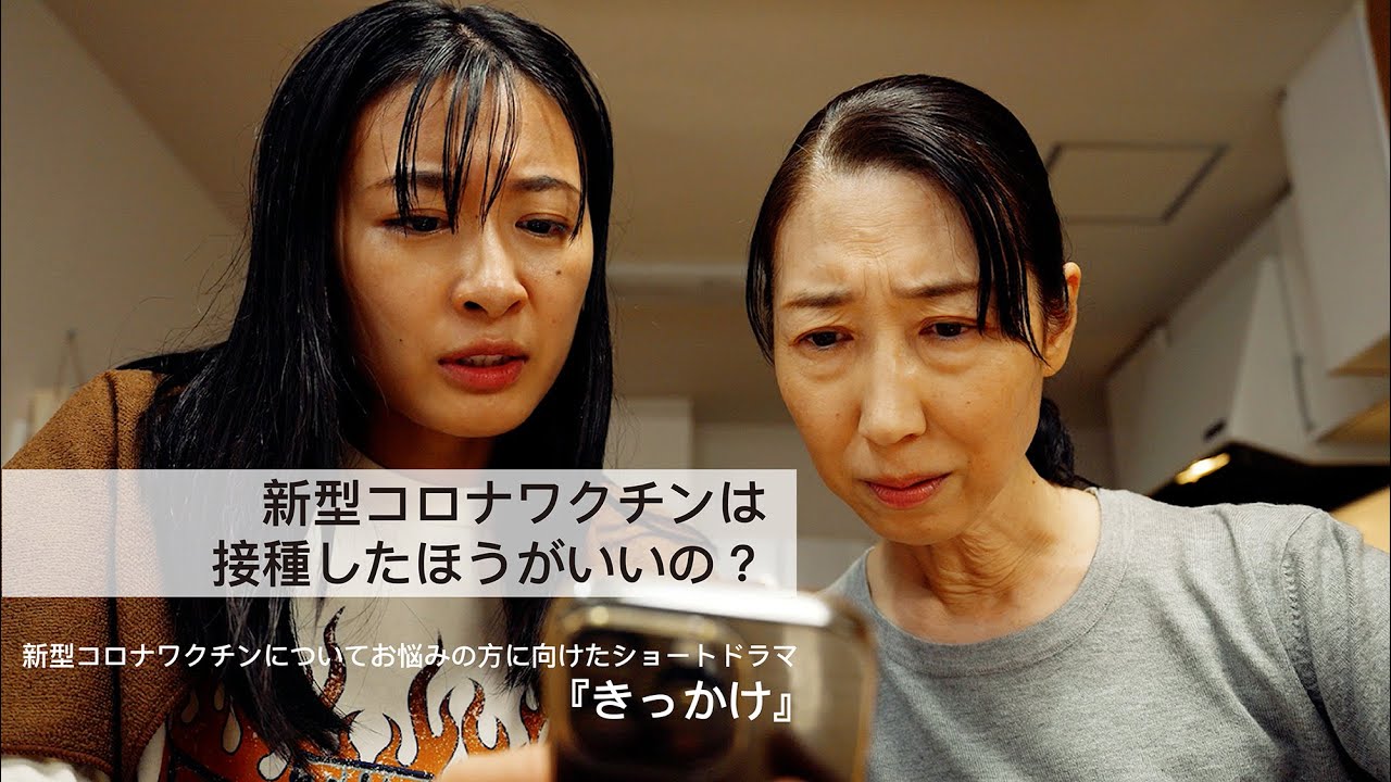 ええ、はい。 10 時。え、大丈夫です。よろしくお願いいたします。 [音楽] ただいま。 あら、 今日は早いね。どうしたの? ちょっと頭痛くてさ。ああ、引き返える。 あなた頭痛いんじゃないの ね。まあもうだいぶマシになった。多分気圧かな。あ、やっぱり夜中雨降って。でも一度病院で見てもらいなさいよ。大きい病気だったらどうするの?ご心配なく。人間ドッグの前ちゃんと受けましたから異常なし。至って健康でございます。 [音楽] [音楽] でも1 回ちゃんとお医者さんから話聞いた方がいいと思うわよ。 [音楽] はい。はい。わかりました。それよりママの方そ気をつけなよ。 [音楽] [拍手] [音楽] 何? コロナまた流行ってるみたいだからさ。 そう。この時期は毎年になっちゃったわね。 そういえばワクチンまだ打ってるの? うーん。 最後に言ったのはいつだったかしら。インフルエンザのワクチンは毎年予約してるんだけど。え、やば。 これ見て。コロナで亡くなった人インフルより全然多いよ。 [音楽] 3 万人以上。まだこんなに知らなかった。 しかも97%は高齢者みた。 65歳って高齢者? うーん。娘的にはまだまだ若いって思ってますけど。けど とは言えコロナワクチンってなんかあれだよね。ネットに色々書かれてるからさ。 打った方がいいんじゃないの?ほら私高齢者なんだから ちょっとそこ引っかかんないでよ。 いいからどうなの? とりあえず私が見たのだとこういうのとか。 え、これ本当? でもこっちのだと真逆のこと書いてあるんだよね。 そうね。 ちょっと待って。ちゃんと調べる。もうわからん。色々情報ありすぎ。マジで。もう今日はやめましょう。 お母さん疲れちゃった。いし方なしいですな。何この 10時からって? ああ、ワクチンの予約。インフルエンザの。 ふーん。 [音楽] ちょっと待って。この日に聞けばいいんじゃん。 [音楽] 何を? コロナワクチン打った方がいいかどうか。 お医さんに ああ、 素人がいくらネットで調べたところでどれを信じたらいいか全然わかんないじゃん。だから専門家に直接聞く。それがベスト。 [音楽] でもインフルエンザのワクチンうちに行くのに関係ないことをわざわざ聞くのはね。 まあまあさっき自分で言ってたでしょ。 1 回ちゃんとお医者さんから話聞いた方がいいって。 [音楽] はい。はい、わかりました。 はい。よろし。 [音楽] 斎藤田さん、中へどうぞ。 確かにコロナはまだまだ油断できない状況ですね。今でも年間 3 万人を超える方々が亡くなっていますから。 あ、その97%が65 歳以上なんですよね。 ええ、そこが1 番怖いところです。感染症を専門とする学会も新型コロナワクチンの摂取を強く推奨していますし、ちなみに昨年から 65 歳以上対象とした毎年秋冬の定期摂取が始まっていますよ。 定期摂取した方がいいんですかね? うん。そうですね。 [音楽] あ、そうだ。これ新型コロナワクチンの 効果を大学が調べたデータなんですけど、 昨年使用されたワクチンでは50%以上の 発症予防、入院予防に関しては60%以上 も効果があったそうです。へえ、そうなん ですね。ただ新型コロナはウイルスの変異 が続いているので接取後数ヶ月でワクチン の効果は減帥すると言われています。1度 コロナにかかった人でも最感染の予防効果 は1年程度でなくなってしまうんですよ。 なので定期的なワクチン摂取が推奨されて いるんです。そうなんですね。でも前に 受けた時が出たんですよ。 なんだかそれも怖くて。 確かにそういった服反応が出る方が多いワクチンではありますからね。それに関してはこんなデータがワクチンの摂取回数が増えるほど副反応特に発熱の頻度は減っているんですよ。熱が出たとしても大半は数日で収まるものです。 [音楽] へえ。そうなんですね。 一方で感染してしまうと思いがけないタイミングで予定が狂ってしまうじゃないですか。 [音楽] ええ、 そういったリスクを避けるためにも予測できて数日で収まる副反応の方が安心して過ごしていただけるのかなと。 確かにそうかもしれないですね。 それに摂取費用がかかるとはいえ感染した時の負担を考えると予防としてのワクチン摂取に意味があると思いますよ。 [音楽] それもそうですね。 正直ちょっと高いかなと思ってたんですけど、もし感染して入院なんてしたらそれこそワクチン以上の出費になっちゃいますもんね。予定も狂っちゃいますし。あ、すいません。色々聞いてしまって [音楽] ありがとうございました。 いえ、このタイミングでご相談していただくのが 1番いいんですよ。 インフルエンザワクチンを摂取される方は多いので、コロナは 65 歳以上の方には本当にリスクが高い病気です。同時摂取もできますので、是非の機会にお検討してみてはいかがですか? [音楽] もしもし。ママ、ワクチンのことをちゃんと聞いた? 聞きましたよ。おかげ様ですっきりしました。 おお、よかった。 で、どうするの?ワクチンは。 それがね、定期摂取士やってるんだって。 65歳以上