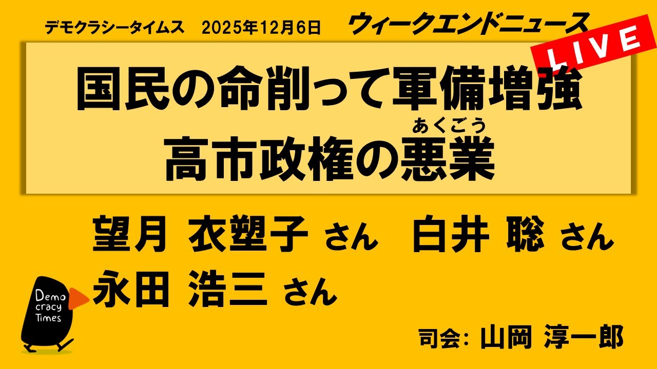 国民の命削って軍備増強 高市政権の悪業(あくごう) (望月 衣塑子/白井 聡/永田 浩三) ウィークエンドニュース 20251206