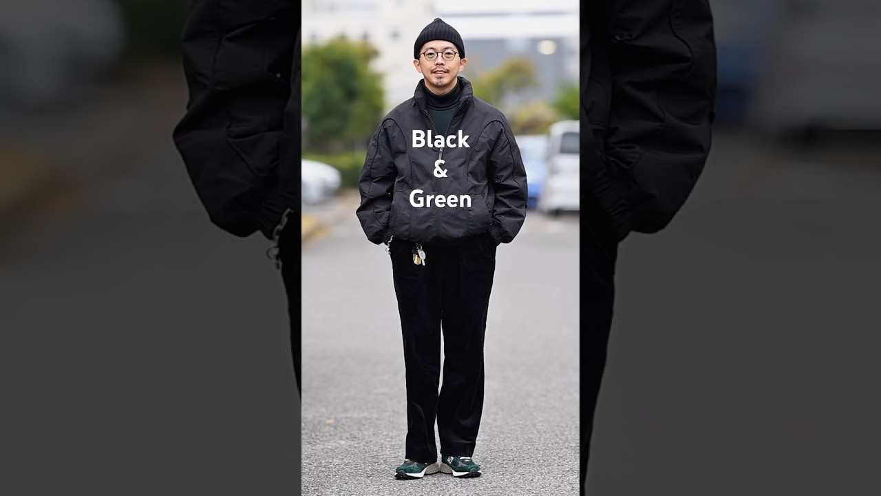 黒アイテム中心にダークグリーンのウールのタートルネックカットソーを。足元の993もグリーンにしてまとめました。#メンズファッション #メンズコーデ #fashion #ファッション #ootd