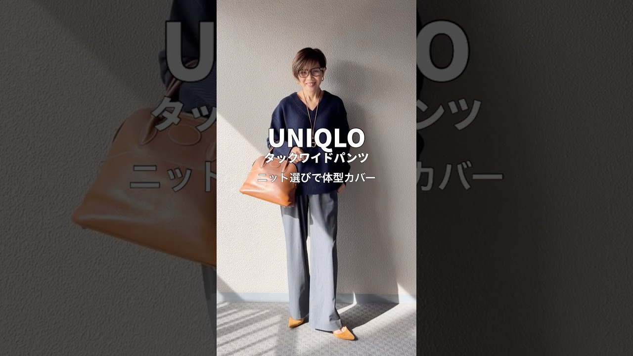 UNIQLOタックワイドパンツにネイビーポイントはキャメルでも靴はネイビーだったかも#大人カジュアル #ファッション #コーディネート #ユニクロ #uniqlo #deuxiemeclasse
