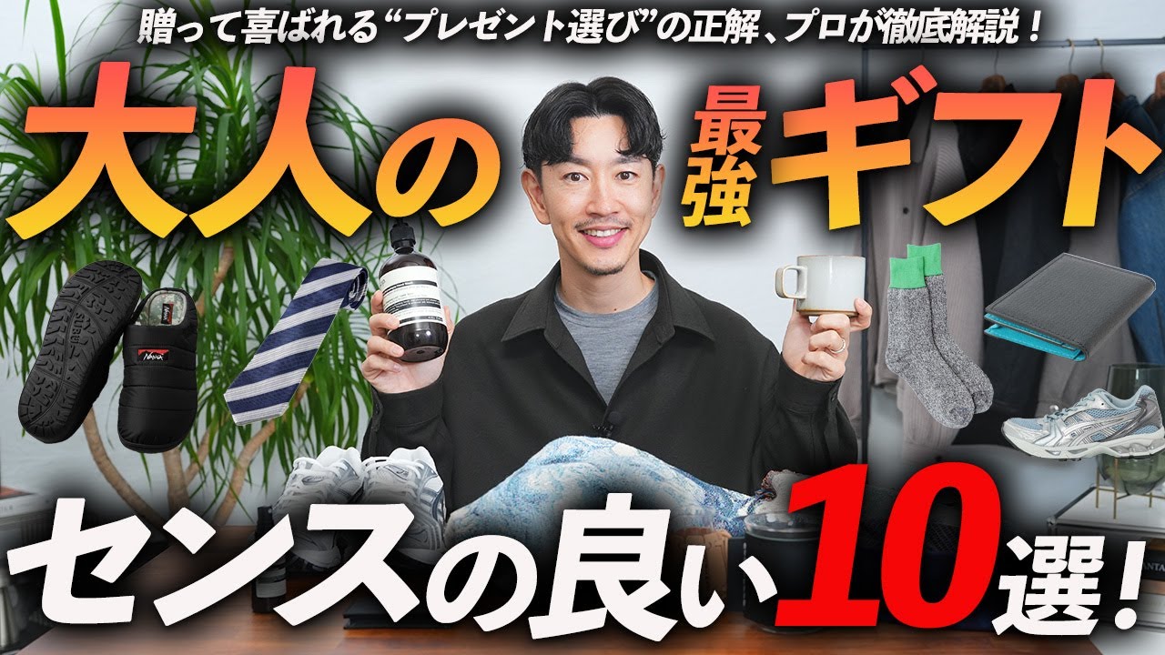こんにちは。スタリストの大山しです。 今回のテーマなんですが、大人に喜ばれる ほんのりセンスのいいギフト10という テーマでお届けをしたいなと思っています 。撮影してる現在なんですが12月という ことでこの年末年始は結構プレゼント需要 が高まる時期だと思うんですね。ま、皆 さんいろんな時期にこの動画を見て いただいてるかなと思うんですが、ふとし た瞬間にプレゼントが必要になる機会って ありますよね。例えば仲のいい友人が 引っ越しをするタイミングだとか、職場の 誰かが心をしたいだとかそういった タイミングだとかお世話になった人に何か 形で表現したいだとかそういった場合に プレゼントを用意することになるかなと 思うんですがいざですねバタバタで用意 するとどんなものを買えばいいのか分から ないということが結構少なくないかなと 思うんですね。それは僕自身も実感があっ て、いろんな服だとかいろんな雑貨を普段 買ってるんだけど、プレゼントに何が最適 かなって考えると意外と難しかったりする ので、今回の動画の中では大人が プレゼントをして喜ばれるような ファッション系のものから雑貨系のもの まで、ま、いろんなものをですね、予算別 に皆さんに10個ご紹介したいなと思って います。ま、今回の動画を撮るにあたって 改めて僕もですね、手持ちのものを確認し たいだとか、今どんなギフトがいいのかな と色々とですね、改めてチェックしたわけ なんですが、あんまりセンスが良すぎたり だとかエッチが効きすぎていても相手の方 が追いけを食らう可能性もあるし、 そもそも理解できないということもあった ですので、あくまでセンスが良かったり おしゃれではあるんだけども、そこまで エッチが立ちすぎないことも結構大事な ポイントかなと思っていますので、ま、 その辺りを考慮しながら、ま、結構多くの 方がもらって嬉しいような相手もですね、 しっかりと選んでいますので、よかったら 最後までお付き合いいただければなと思っ ています。また今回もですね、独断と偏見 で鉄板ギフト、プレゼント系をですね、ご 紹介しますが、皆さんの方でもいろんな ジャンルのアイテムあると思うんですよね 。ファッション系もあれば、インテリア、 食品とかもあるかなと思うんですが、これ は結構おすすめだよというのがありまし たら是非コメント欄でシェアして いただければなと思っています。こちらの チャンネルでは大人男性に向けてメンズ ファッションの今日ですね、なるべく 分かりやすく解説をしています。また僕 自身のブランド、そうというものも展開し てまして、大人の男性に向けて少数 1000円の定番服をですね、ご提案して いますので、よかったらこちらもチェック してみてください。それでは早速本編に 行ってましょう。 はい、ということでこっからはですね、 具体的に大人にプレゼントして喜ばれる 本のりセンスのいいギフトプレゼントを ですね、皆さんに10個ご紹介したいなと 思うんですが、ま、予算別でお伝えしたい なと思ってるんですが、まず1番ですね、 価格抑えでサクっと何かプレゼントしたい なという時ですね。大体値段で言うと 1800円から2500円、3000円 ぐらいのレンジなんですが、ま、それ ぐらいの予算感で考えるんだったら僕の中 ではやっぱりソックスこの辺りがもう鉄板 になってくるかなと思います。ま、正直 自分自身で靴下を選ぶのであればユニクロ だとかファミマのソックスで十分なんです ね。僕もこういったファッション系の仕事 してますが、日常のソックスは本当に ユニクロとかファミマが多いんですね。だ けども、ちょっと今日はおしゃれをして 出かけたいなという時にはちょっといい 靴下1000円以下ではなくて、ま、 2000円前後とかが12速あって、そう いったもの履くだけでちょっと気分が 上がったりするんですが、ま、そういった ソックスを自分で買うのはちょっとハード の高さを感じることもあったですので、ま 、そういったものをですね、プレゼントし てあげると結構喜ばれるので、ま、例えば ですね、僕が愛用してるこのビブソックス というものですね。ま、これパッケージに 入っていて、これだけでもですね、センス の良さもちゃんと漂っているので、ま、 プレゼントにも最適かなと思うんですね。 ま、こういった靴下を専門に作っている 国内ブランドって、ま、ビブテックスが あったりだとか、あとはロトという ブランドもあるんですが、ここもすごく ですね、デザインいいのでおすすめの ブランドになります。ま、こちらのダブル フェイス、クルーソックスシルク& コットンですね。2310円ということで 、ま、バイカラーになっていて、足首の 部分と本体部分で色が変わっていて、 ちょっと目調になってるんですね。これも ね、すごく使いやすいし、足首の部分が ちょっとこうアクセントカラーになってる ものは可愛いので、こういったものを プレゼントしてあげる