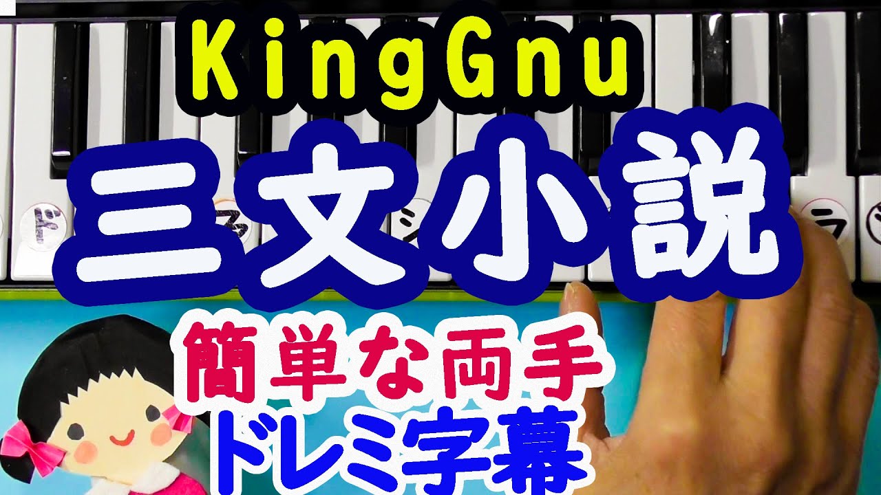TV「35歳の少女」主題歌「【三文小説】KingGnuの曲は難しものが多いのですがこの曲は比較的ピアノ初心者でも弾きやすいと思います。簡単な楽譜にして両手で弾いています。分かりやすい様に演奏と同時進行で、ドレミ楽譜の字幕を表示しています。黒い鍵盤を使う音は♭シ→㋛ #ファ #ド #レなど字幕に表示します。 鍵盤に貼ったドレミシールと♭やシャープ記号を見ながら楽しんで弾いてくださいね。楽譜が読めない方でも練習用動画として使って頂ければ嬉しいです。