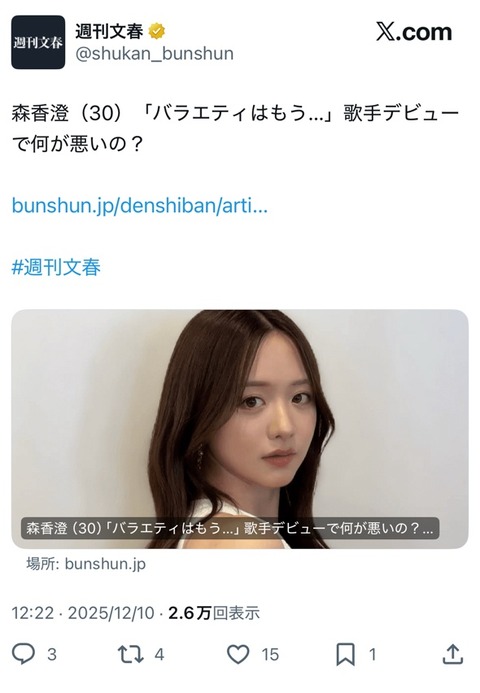 1:それでも動く名無し:2025/12/10(水) 13:33:50.17 ID:BCaubqZg0 ちな歌唱力 https://video.twimg.com/ext_tw_video/1934…1024/b3h-gvHgjQz3-86y.mp4?tag=12 2:それでも動く名無し:2025/12/10(水) 13:34:26.86 ID:zYvLiZJr0性交したいパワーでのし上がった女やから歌唱力とかいらん 2ch2chblognews2ch