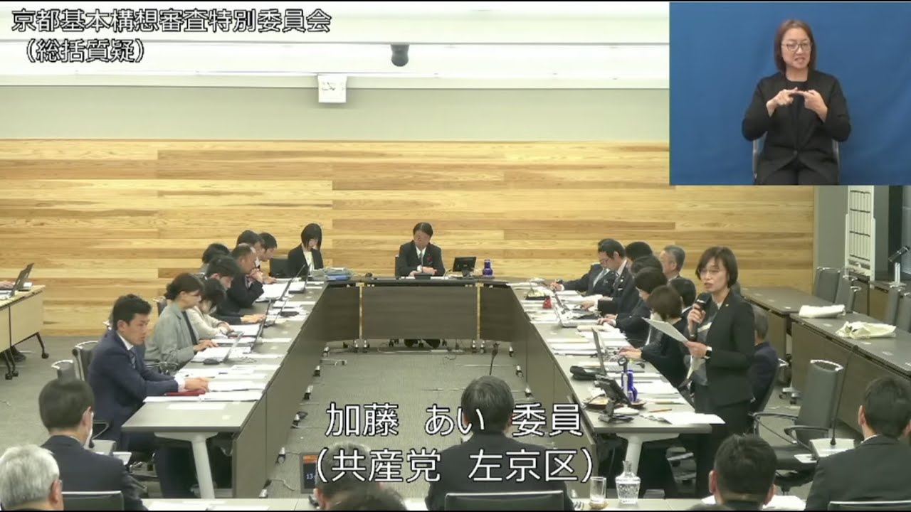 2025年12月5日の「京都基本構想審査特別委員会(市長総括質疑)」において、加藤あい議員(左京区)が質疑を行いました。主なテーマは以下の通りです。