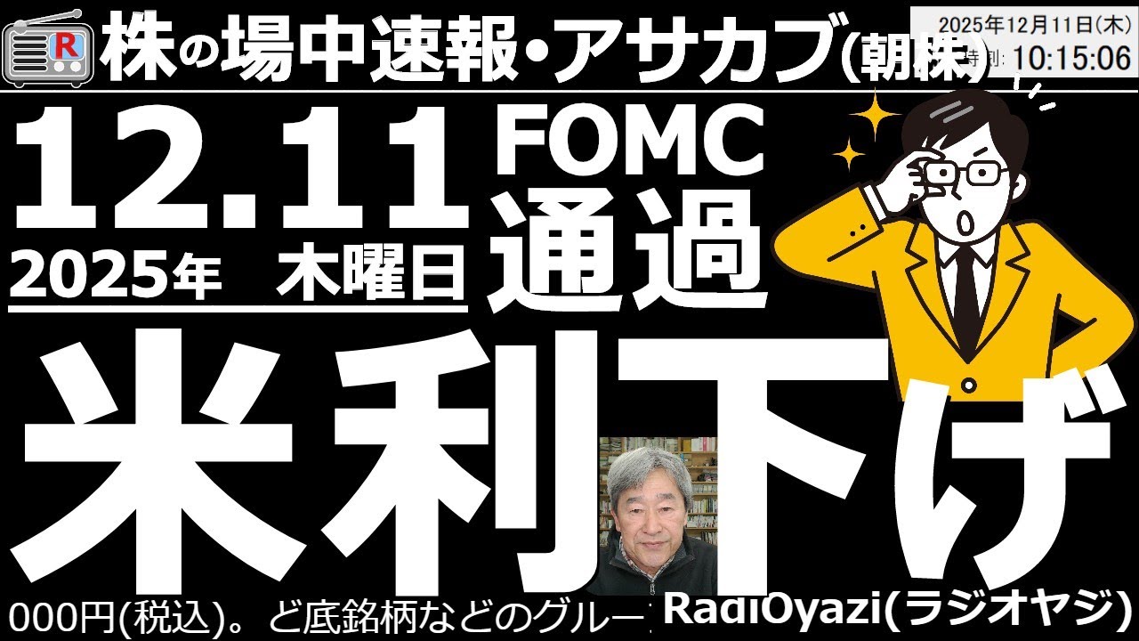 【朝株!(投資情報)】米FOMC通過。FRBは利下げを決め緩和的な金融政策を示唆。結果アメリカ株高に!日本株は追随できるか?●買いシグナル点灯:5032ANYC、7974任天堂、2413エムスリー、他