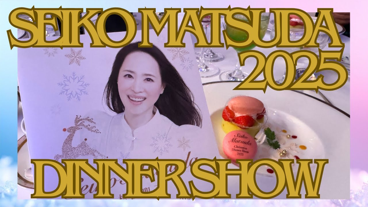 こんにちは。今回は松田誠子さんの クリスマスディナーショー2025の模様 をお届けします。今年もスペシャルな一夜 を体験してきました。 今年も豪華で夢のような空間でした。 セットリストやチケット情報も後半でお 話ししますので、是非最後までお楽しみ くださいね。それでは見ていきましょう。 今日は町に待った松田誠子さんのディナー ショーです。品川駅に到着すると特別な夜 が始まり予感で胸が高ります。 時間はまだ2時。こんなに早く品川駅に 到着した理由は? そうです。ヘアセットをしていただくため です。今回は税込み3800円でお願い できるサノを見つけたのでそちらを予約し ました。 完成しました。どうですか?今回は Amazonで買ったヘアアクセサリーを しっかり持ってきましたよ。 腕の良いヘアメイクアーティストさんの おかげで今年もお目かしができました。 ザクロ坂を登ります。この坂を登るたびに ワクワク感が蘇ります。 今年で5年目ですがこの紅葉感は何度して も特別です。 のサインは光輝き。大きなバナーが見える と期待が一気に膨らみます。 ホテルの扉が開いた瞬間、ひびやかな世界 が広がります。チェックインカウンターで は優雅なお客様たちが手続きをしていて、 右手には輝くクリスマス釣り。特別な夜の 始まりを感じます。 もみじで色られたラウンジのピクチャー ウィンドウが広がり、奥へ進むとディナー ショーのゲストのための行為室があります 。 本日の行為室には私の他に多数のお客様が いらっしゃいましたので、荷物をまとめて 靴を履き換えたらクリスマスツリーの前で かしり。ちょっとファッションチェック。 今日は20代前半に買った赤と黒のドレス に黒のシールを合わせました。 実はテムっていう販売サイトご存知ですか ?そちらでドレスを購入したんですが、 なかなかイメージ通りとはいきませんね。 似合わなくて今日は断念しました。 明日は来てみようかな。 ホテルのロビーもクリスマスの雰囲気でとても優雅に過ごすことができます。 17 時、いよいよ入場の時間です。点の前続く扉がゆっくりと開き、 目の前に広がる光景に息を飲みます。 柔らかなパステルカラーの光に包まれた 螺旋場のループが夢の世界へと誘うように 入り続いていきます。 揺れる風船たちが軽やかに踊る中、周りの 宣伝された人々が特別な空間をさらに輝か せています。 毎年訪れているこの場所今年か来年が最後 だと聞きました。 このアプローチをあと満回歩けるのだろう 。 この幻想的な世界が心に寄り添い、特別な 夜が静かに始まっていくのを感じます。 チケット認証を済ませたらまずはクローク に荷物を預けます。身軽になったところで 目の前には美しく輝くクリスマスツリー。 食事が始まる前になると込み合ってしまうので早めに撮影を済ませるのがおすすめです。 雪がクリスマスツリーに華麗なバラが装飾されていました。そして会場を彩る花台。華やかな会場の雰囲気をしっかりと刻みます。 せい子ちゃんのディナーシには欠かせない赤い水。実はこの会場内でも購入できるんです。ディナーシのグッズも販売されていて、ここでしか手に入らないアイテムもたくさんあります。 特別な記念になるので是非チェックしてみ てください。 ディナーシ限定のTシャツはストーンがれ ていてとても華やかです。 こちらのチャームは本日分は当日に 売り切れたんですよ。とても可愛いですよ ね。 こちらが新高プリンスホテルの大園会場点 のです。横浜約58、奥行き約32mの 広々とした空間に1000人以上のお客様 がゆったりと着席できるレイアウト。特別 な夜にふさわしいスケール感が広がってい ます。 こちらが私の席です。1人での参加ですが 、今回は他の方々3人と一緒に4人席で ディナーを楽しむことになります。本当に 素晴らしい方々で大変心地よい時を過ごす ことができました。 会場全体のミトをご覧ください。私の席は 後方エリアのこの辺りになります。 少しステージからは距離がありますが、 その分会場全体の華やかな雰囲気や ステージの演出をしっかりと楽しめる位置 です。 サイトの輝きやステージ全体の動きが一望 できるのも方法石ならではの魅力です。 テーブルの上にはシャンパンや追加で オーダーできるボトルの価格表が用意され ています。自分のスタイルにあった楽しみ 方を選べるのもディナーの魅力の1つです ね。さすがにドンペリニンはお高い。 せ子さんの写真が表にプリントされた素敵 なメニュー表が遅れています。この夜を 彩る特別な演出の1つですね。 そしてディナーと一緒に楽しめるのは フリーで提供されるシャンパン、白ワイン 、赤ワイン。さらにスペシャルカクテルも アルコールとノンアルコールの両方が用意 されていて、ビールやウイスキー、ソフト ドリンクなども選べます。 17時30分着席するとすぐにサーバーの 方がやってきました。注がれたのは シャンパーニュローランペリエラキュベ 。去年のスパークリング