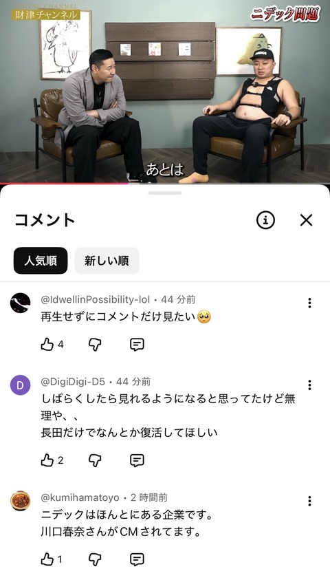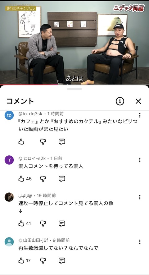 1:それでも動く名無し:2025/12/15(月) 17:23:22.59 ID:bXBkuqz90 再生数とコメント 2:それでも動く名無し:2025/12/15(月) 17:23:41.41 ID:bXBkuqz90もう炎上も収まっとる 勝ちや3:それでも動く名無し:2025/12/15(月) 17:24:15.33 ID:uCvT5Pb/0逃げ切ったな 2ch2chblognews2ch