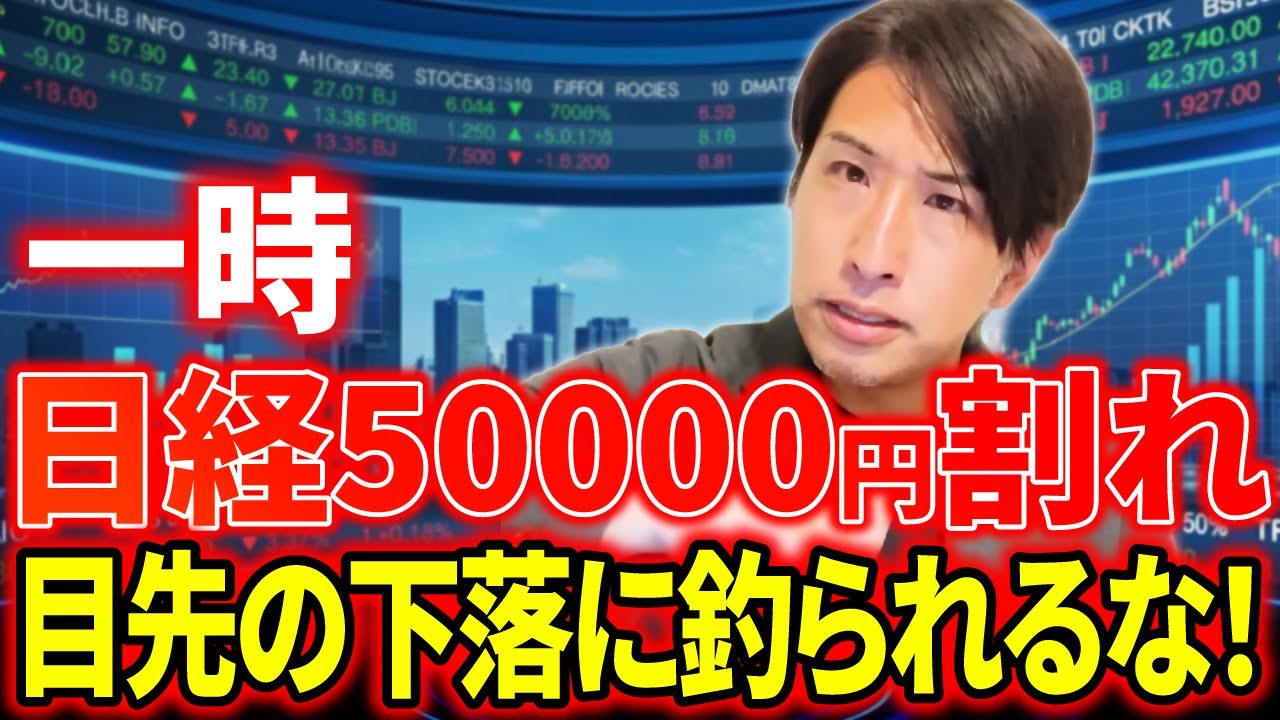 一時日経平均株価は50000円割れ。でも、目先の下落に釣られないように。