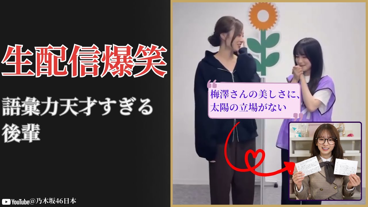12月15日配信の『週刊乃木坂ニュース』で、菅原咲月 Sugawara Satsuki は後輩・鈴木 佑捺 Yuuna Suzuki が残した直筆メモを読み上げることに。梅澤美波 Minami Umezawa の写真集を絶賛するその文章は、常識を超えた語彙力と熱量でスタジオを席巻。「太陽の立場がない」という名言に、菅原咲月 Sugawara Satsuki は呼吸困難寸前の爆笑を見せました。