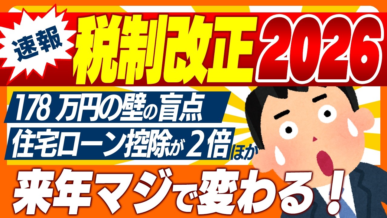 「【超最速!】年収178万円の壁、インボイス、暗号資産、NISA、住宅ローン控除、青色申告、自動車…令和8年税制改正【会社員・個人事業主/通勤/生命保険/子ども/仮想通貨/富裕層/高市2026】」