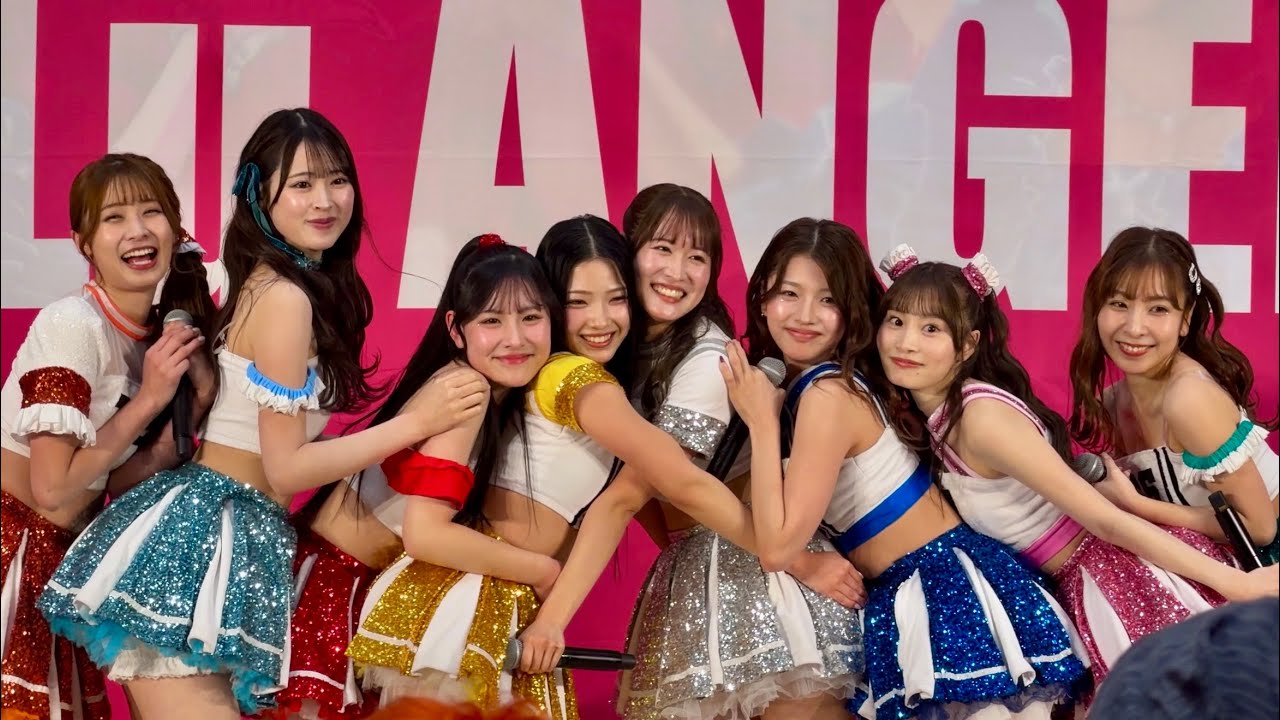 ありがとうございます。ありがとうございました。頑張ってね。 バイバイ。ありがとうございます。 皆さん、改めまして私たちがロールエンジェルです。ロールエンジェルのこと初めて見たよって方いますか?あ、 お、 ありがとうございます。 上の方でありがとうございます。 ありがとうございます。 今日はね、皆さんに会えるのを本当に楽しみにしていました。早速ですが、私たちの曲を披露させていただきたいと思います。 はい。 それでは聞いてください。軍場スタートライン。 同じ夢をかけて白い車をいくつ飛び越えたらいつかたどり着けるはず。 最後べたあの日から少しびてる君が何 て死り出す一緒に夢を えるのに輝く君がいれば諦めたくない できたさ夢を追いかけて白もいくつく 飛び越えたらいつから憧れた天身になれる かなもっと走り続けていていく手がわから なくなって君といる場所なら 溢れているからっても立ち上がるよき い弱きになりたちまたしさも痛いならけ れたくない から始め を 逃げた してきたもそんなに意味があることを今 ならよくわかるよが高まる 準備できとさい 空の中で風の で行けたらいつか後ろし になれるからもっと 願いを忘れずにいたき 見える世界全部笑顔に変えていける君がい てんだよきっと 軍上 おめ に夢を追いかけて白の雲をいくつ飛び越え たらいつ憧れた天士になれるかな さにさ夢を叶えるまでひらめく星に手を 伸ばしていよいか憧れたになってる 走り続けいて行くが分からなくなってもこ 君と言う場所なら ここからも立ち上がるよきっと 情イ ヘイヘイヘイヘイヘイヘ ありがとうございます。 ありがとうございます。 ありがとうございます。ございます。 それではここからは私たちの自己紹介をさせてください。もちゃんお願い。 はい。ロールエンジェルの戦力少女最年勝 15歳のももちゃんと変ももかです。カ メンバーカラーは赤です。今日は初めてね、ローエンジェル見たよって方ももちゃんのこと是非覚えて帰ってください。よろしくお願いします。 イエイ イエイ。 はい。ローレンジの体育会系美少女兄ちゃんこと 2わかです。 ありがとうございます。 メンバーからはホワイトです。有リオ川口お越しの皆さん、今日 1 人でも推を見つけて帰ってください。短い間ですが全力でパフォーマンスさせていただきます。よろしくお願いします。 イエーイ。 はい。ローエンデルの限界アイドルなるピコと板のなるみです。 ありがとうございます。メンバーからは緑です。 本当にね、この前から 2階から3 回からたくさんの方が来てくださっていて、ちょっと緊張はするんですけど、是非ね、あの、別の衣装とか来てますので、今日を見つけて帰ってくれたら嬉しいです。盛り上がりましょう。よろしくお願いします。 イエーイ。 はい、ローレエンジェルのハッピー担当お花と北村花です。 ありがとうございます。メンバーカラーはピンクです。ロールエンジェルのツインテールガールで覚えてください。 皆さん、今日最後まで私たちのことを目を離さず見ててくださいね。よろしくお願いします。 イエー。 はい。ロールエンジェルのとろける歌声魅惑のペースみれこと堀口みれです。 ありがとうございます。メンバーカラーは青色です。え、今日は有川口にいらっしゃる皆さんを私の歌声で、私たちの歌声でメロメロにしていきたいと思いますので、皆さん一緒に盛り上がってください。お願いします。 イエイ。 はい。ロールエンジェルのポツお姉さん三日月おめのあーちゃんこと可愛い彩あです。 ます。メンバーカラーはオレンジです。今日は皆さん私にメロメロになって帰ってください。よろしくお願いします。 イエーイ。 はい。ロールエンジェルの ダンスタント19 歳のレナちこと松山れナです。メンバーからは黄色です。ありがとうございます。 え、本日モールでのイベントは初めてなのでメンバー全員で気合入れて頑張るので最後まで楽しんでいってくれると嬉しいです。よろしくお願いします。 イエーイ。イ はい。エンジェルの癒しのピアガールリンコとお崎りです。 ありがとうございます。メンバーカラーは水色です。今日はアリオ川口にお越しの皆さんと短い時間ですが一緒に楽しんにけたらいいなと思います。今日はよろしくお願いします。 はい。 そしてメンバーであるほのぴょんこと中山ほかを入れて私たちは 9人で活動しています。本日はこの 8 名となりますが皆さんと一緒に最後まで盛り上がっていくのでよろしくお願いいたします。 よろしくお願いします。 はい。それでは私たちの楽曲 2 局ここからは続けて皆さんに披露させていただきたいと思います。 はい。 はい。 はい。そして最後に披露させていただく曲 は私たちの最新曲になります。皆さん是非 覚えて帰ってください。それでは聞いて ください。おシーズム君は100万点。 イエー 。 も今ちゃんにはれためキラキラをアプレはたがてる の 見てもうお願いいっぱい可
