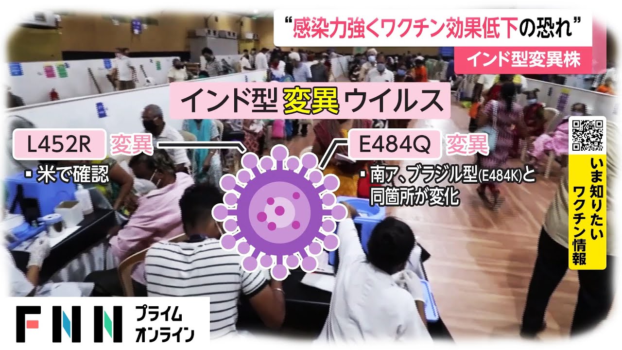 このインド型変異ウイルスについて、国立感染症研究所は、従来型より感染力が強く、ワクチンの有効性を低下させる可能性があると指摘している。