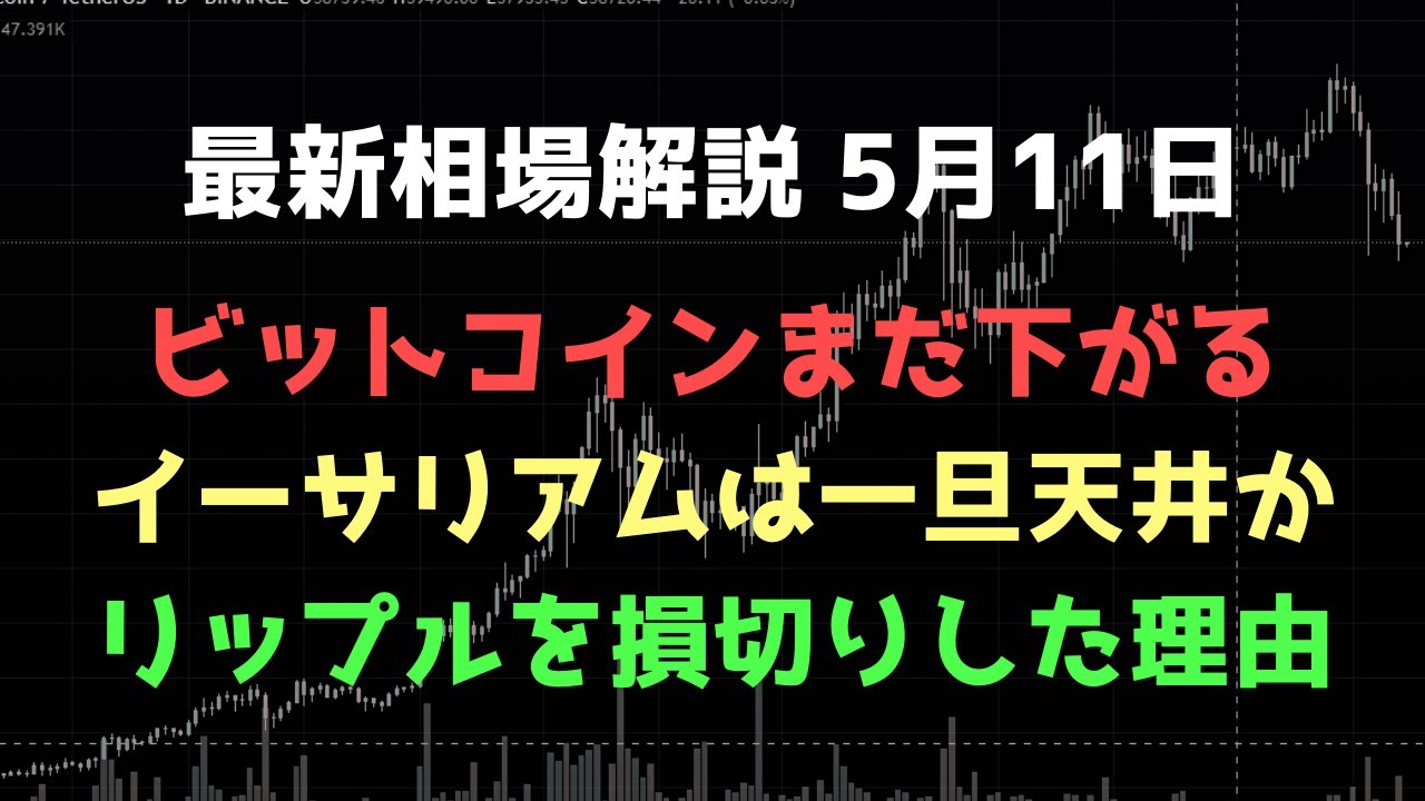 ビットコイン、イーサリアム、リップルの値動きの解説をします。ビットコインは非常に長い下髭を出して反発してますが、持ち合った後再度下がると考えます。イーサリアムはバブル状態なので予測不能ですが、一旦の天井を想定。リップルは想定したシナリオを外れたので、売りたくなかったですが半分売りました。その根拠についてお話します。
