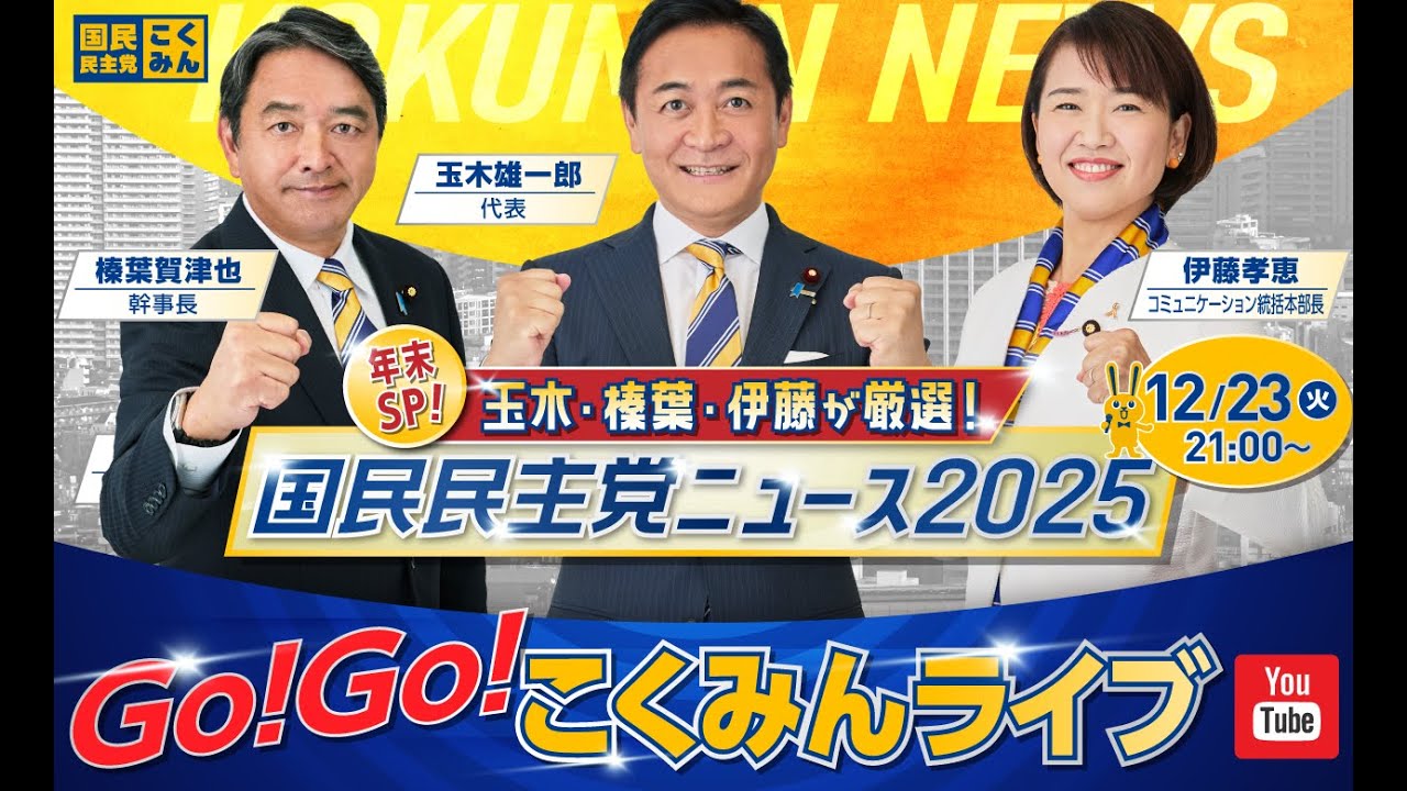 Go!Go!こくみんライブ~年末SP! 玉木・榛葉・伊藤が厳選!国民民主党ニュース2025~#玉木雄一郎 ・#榛葉賀津也 ・#伊藤たかえ ~