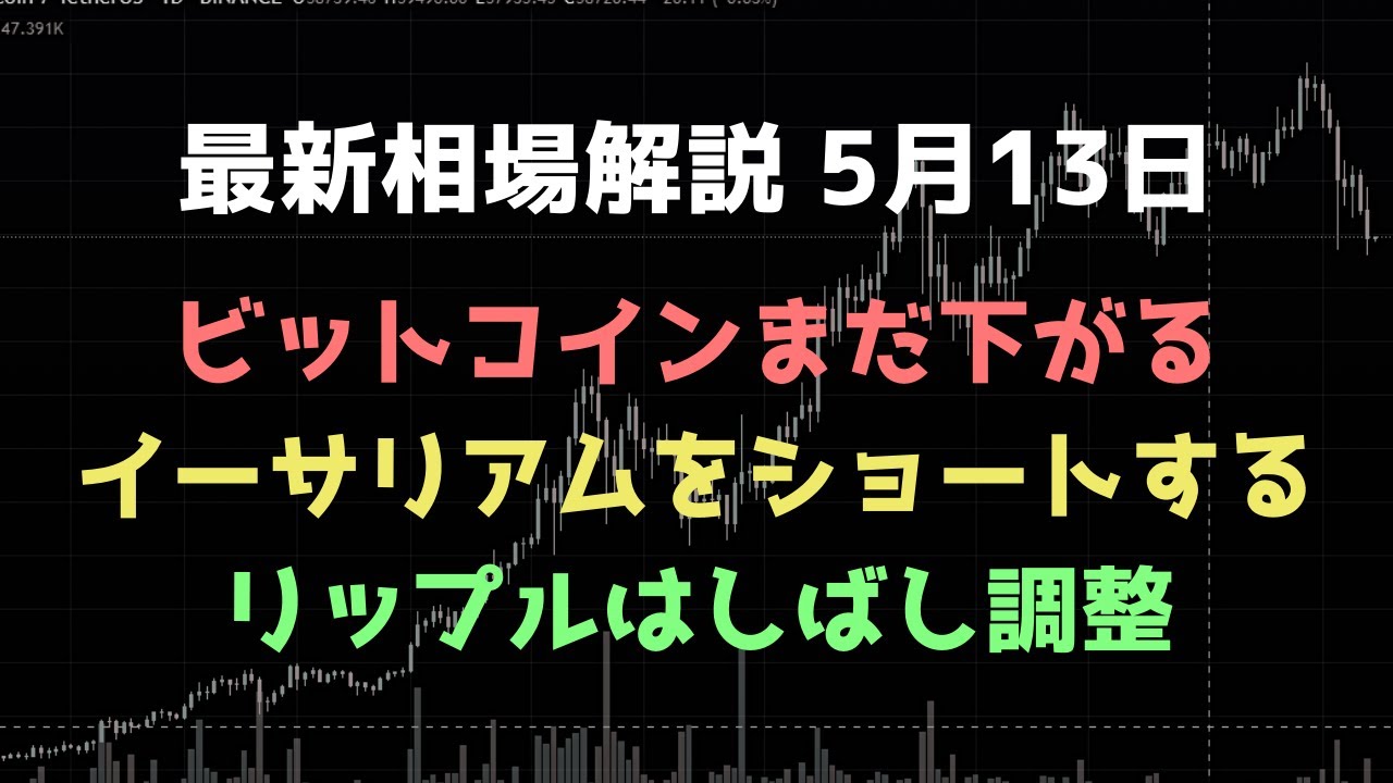 ビットコイン、イーサリアム、リップルの値動きの解説をします。ビットコインは幸い下落を急いでくれているので、48000ドルは下抜けないと考えます。イーサリアムは明らかに上がりすぎで、ピンバーを出しているのでショートします。リップルは対BTCが強い形ですが、少しみんなの絶望不足で上値が重いと考えます。その根拠についてお話します。