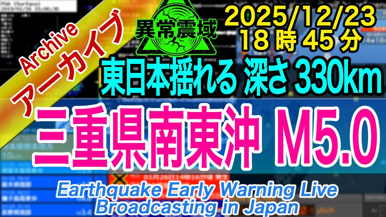 【▲異常震域】三重県南東沖 深さ 330km M5.0 2025/12/23(18:45)