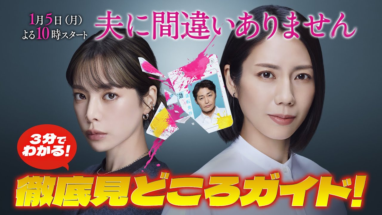 1月5日(月)夜10時からスタートする新ドラマ「夫に間違いありません」の見どころを3分で徹底解説!コレを見れば放送が待ち遠しくなること、間違いありません!