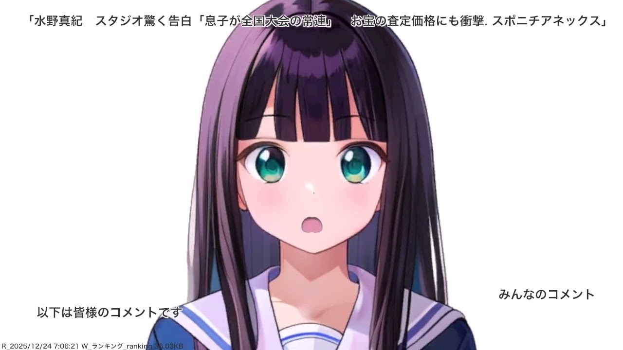 Share Facebook Twitter Pinterest LinkedIn 水野真紀 スタジオ驚く告白「息子が全国大会の常連」 お宝の査定価格にも衝撃. スポニチアネックス ニュース みんなの反応 などをVTuberがお届けします。 この動画の参照記事:https://news.yahoo.co.jp/articles/270ea4ba1af459d4319ed335ca826b756987ea68 celebrity水野真紀