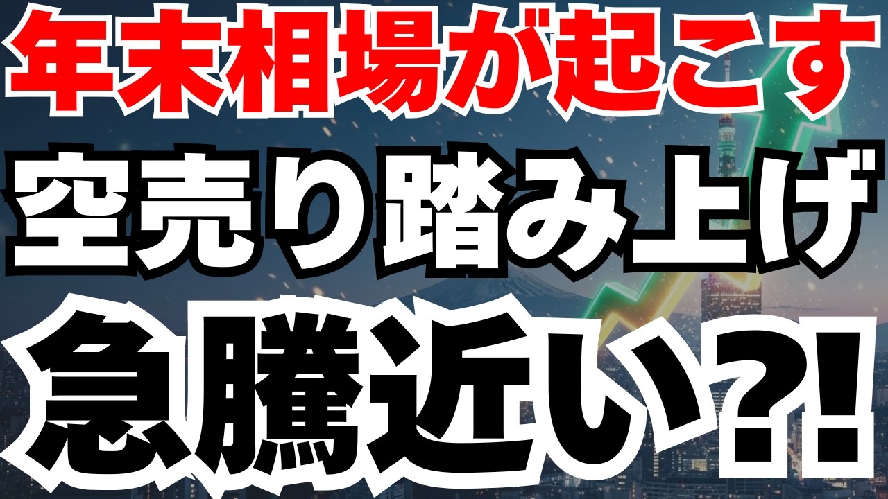 【動画概要】2025年12月末、日経平均5万408円の史上最高値圏で年末相場特有の「踏み上げ」が発生する条件が完璧に整っています。売買代金3兆円割れの薄商いの中、6月高値から積み上がった空売り残高が6ヶ月期日を迎え、NISA枠360万円の駆け込み需要が下値を固める完璧な需給構造が出現。12月30日大納会に向けてショートスクイーズによる急騰の可能性を徹底解説。