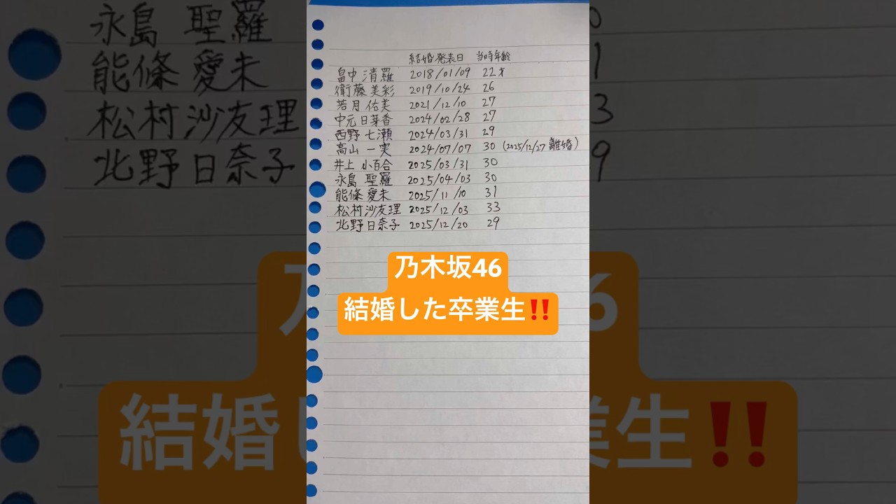 乃木坂46結婚した卒業生‼️【西野七瀬・高山一実・松村沙友理・北野日奈子】