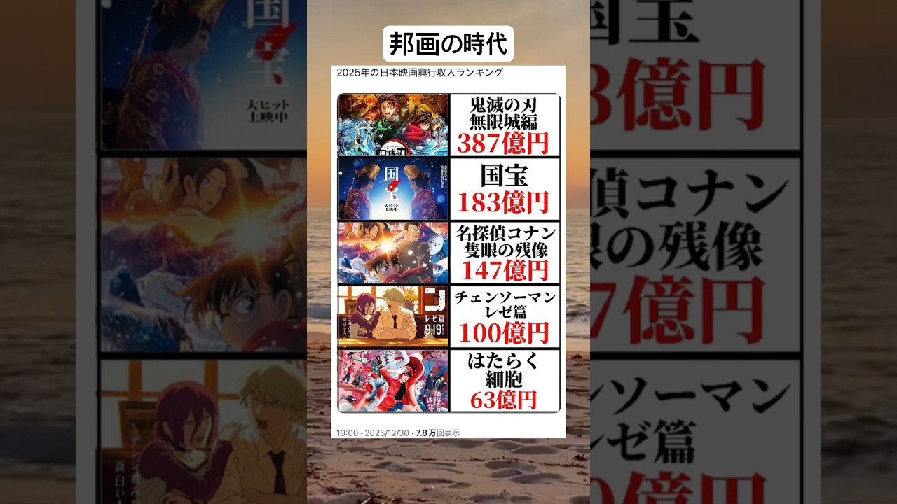 Share Facebook Twitter Pinterest LinkedIn 2025年の映画興行収入ランキング、チェンソーマンレゼ篇が100億円突破 #shorts #おもしろ #おすすめ #チェンソーマン #レゼ篇 movie映画映画興行収入