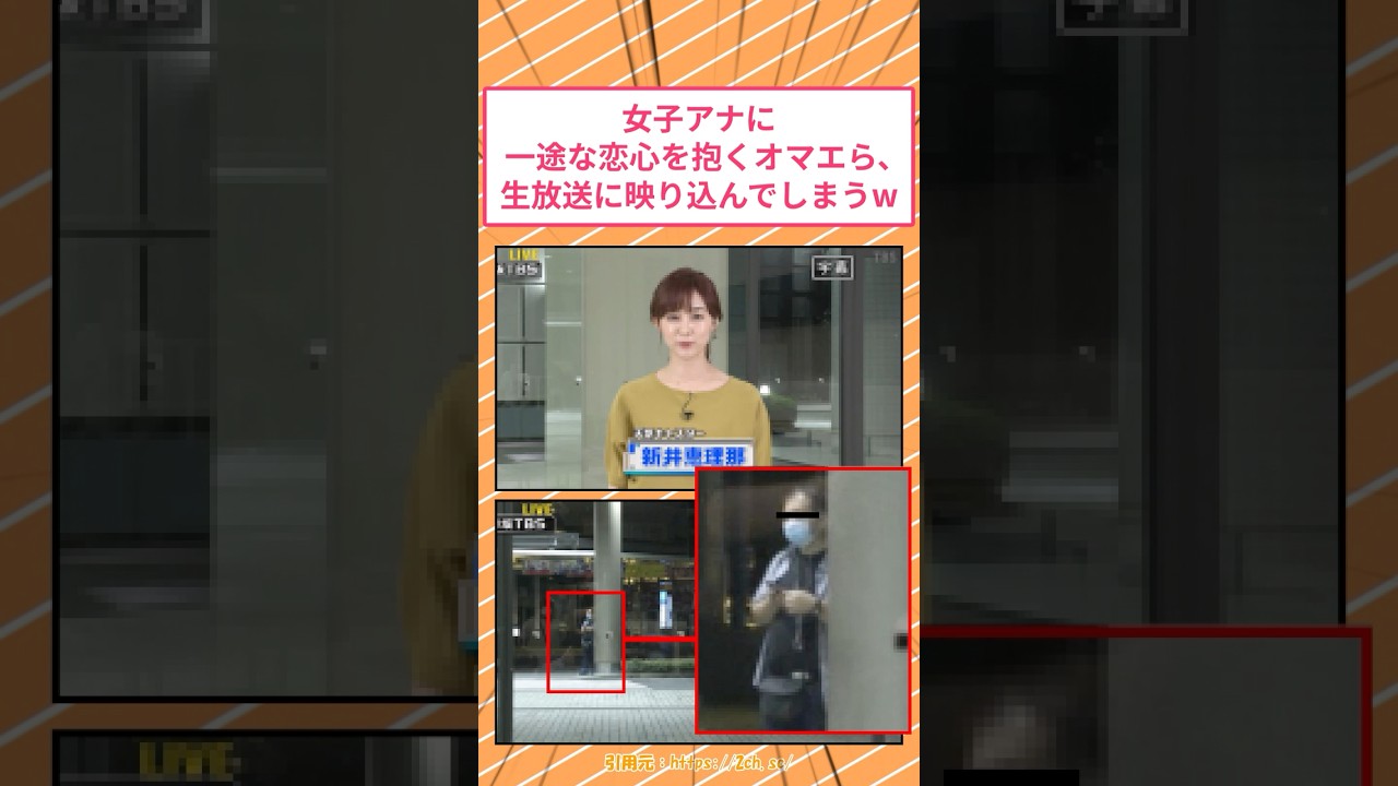 Share Facebook Twitter Pinterest LinkedIn 女子アナに一途な恋心を抱くなんj民、生放送に映り込んでしまうw #2ch面白いスレ TBSの生放送、クッソ可愛い新井恵理那アナウンサーが天気予報読み上げwww ん!? なんか怪しいおっさんが映り込んどる放送事故発生やんけwwwww ———————————– ★コメントや「いいね」、チャンネル登録いただけると励みになります。 ———————————– #5ch #2ch #新井恵理那 #女子アナ celebrity新井恵理那