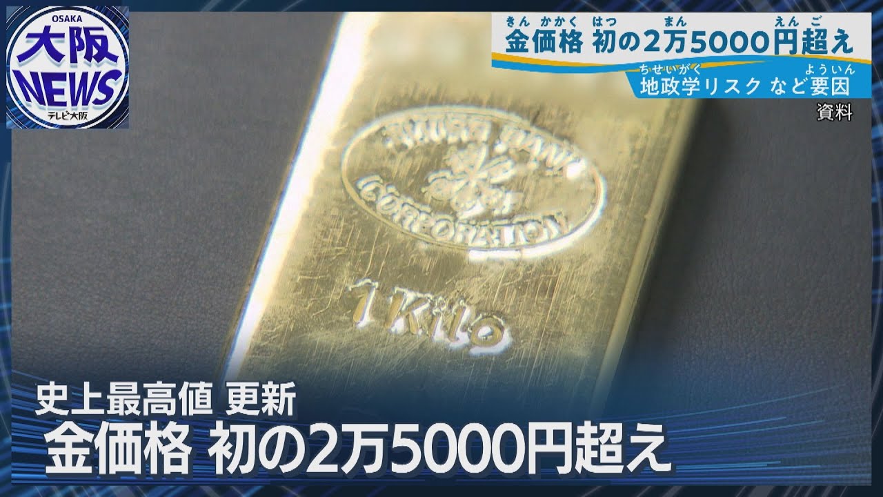 金の小売価格がきょう、1グラムあたり2万5000円を初めて突破し、史上最高値を更新しました。背景には、アメリカやベネズエラをめぐる地政学的リスクの高まりで「安全資産」とされる金への需要が急増していることや、円安の進行があります。金の需要はこの数か月で急増しており、今後の動向が注目されます。