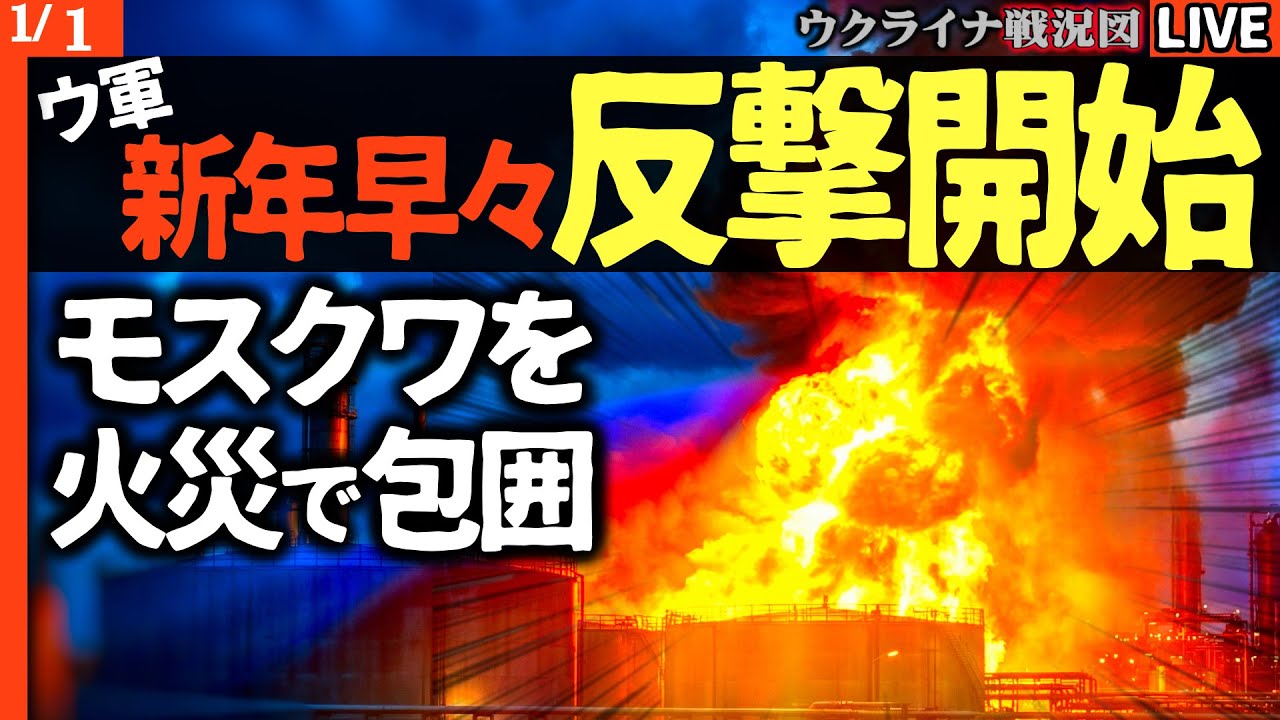 💥【衝撃映像】新年早々モスクワ炎上!ウクライナ軍、首都300kmを炎で囲む!ロシア石油施設が次々爆発…【ウクライナ戦況Live】完全占領まであと100年!高い死傷率に苦しむ