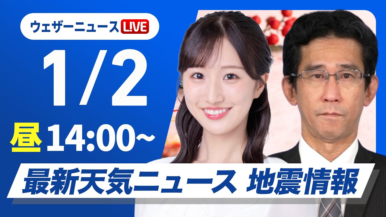 【ライブ】最新天気ニュース・地震情報 2026年1月2日(金) /〈ウェザーニュースLiVEアフタヌーン・田辺真南葉/山口剛央〉
