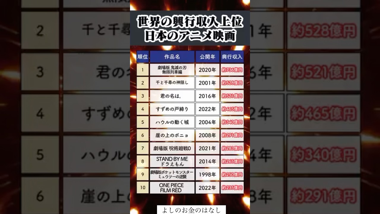 世界の興行収入上位日本のアニメ映画#貯金 投資#転職#貯金