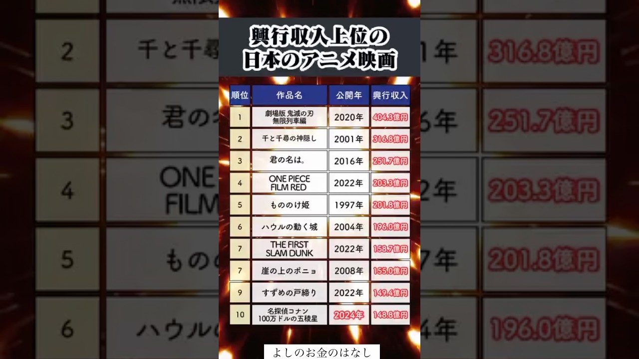 興行収入上位の日本アニメ映画#投資#転職#貯金